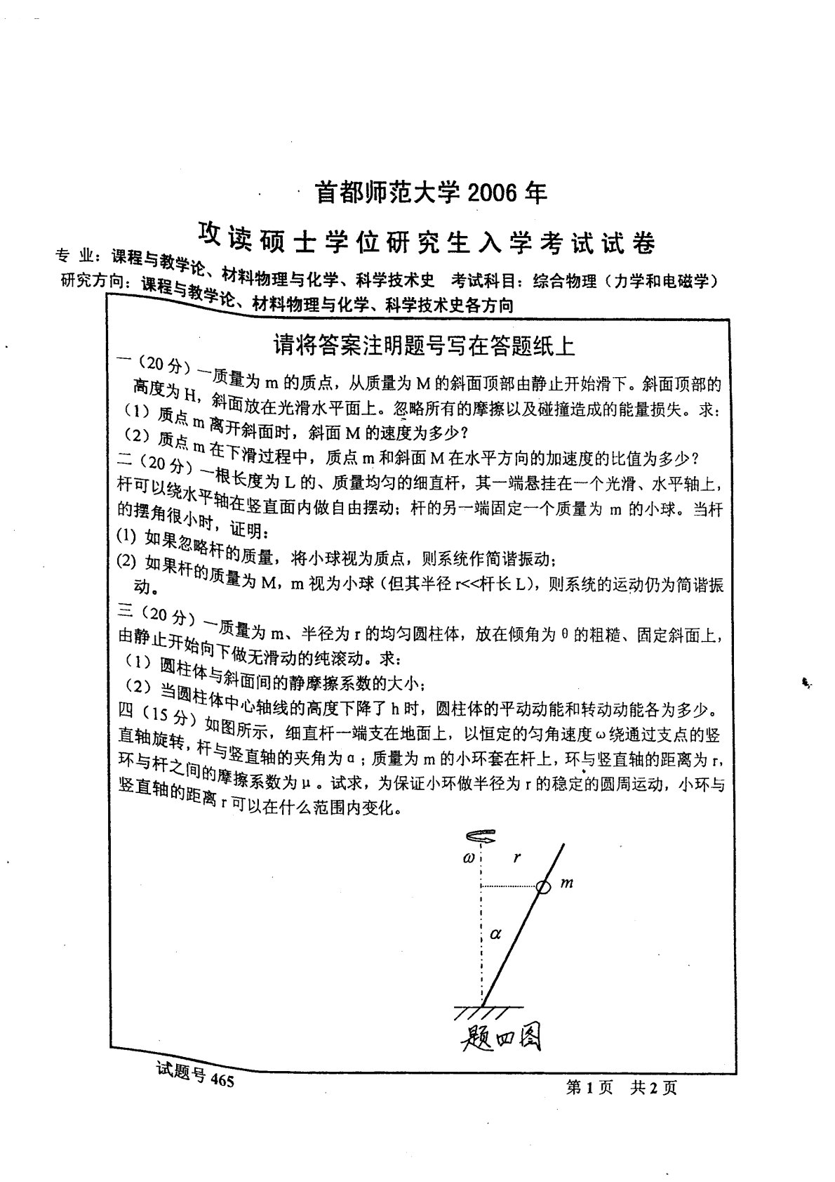 首都师范大学803综合物理2006年真题