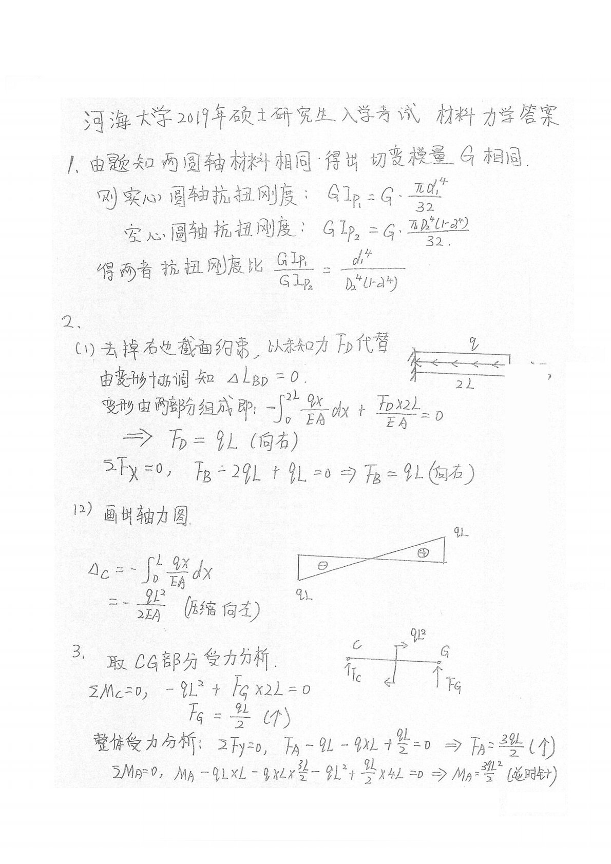 河海大学813材料力学2019年考研真题答案