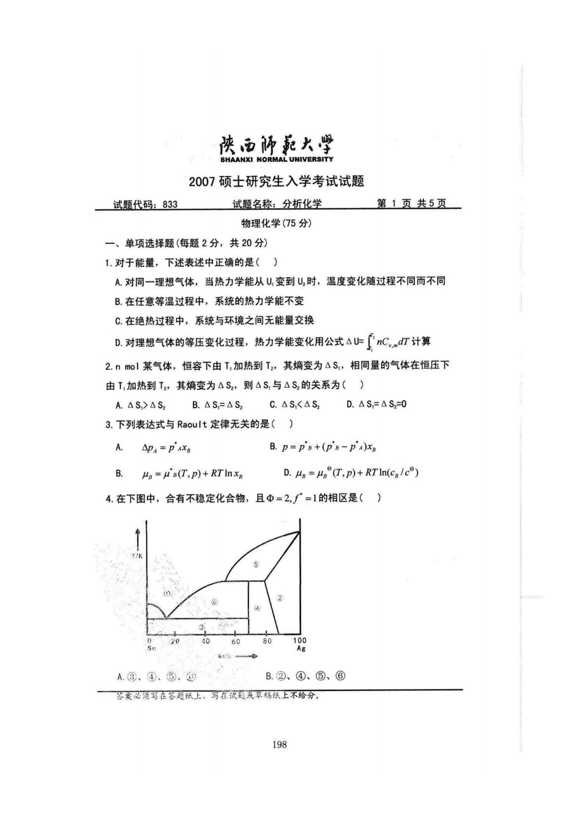 陕西师范大学832综合化学2007年真题(分析化学)