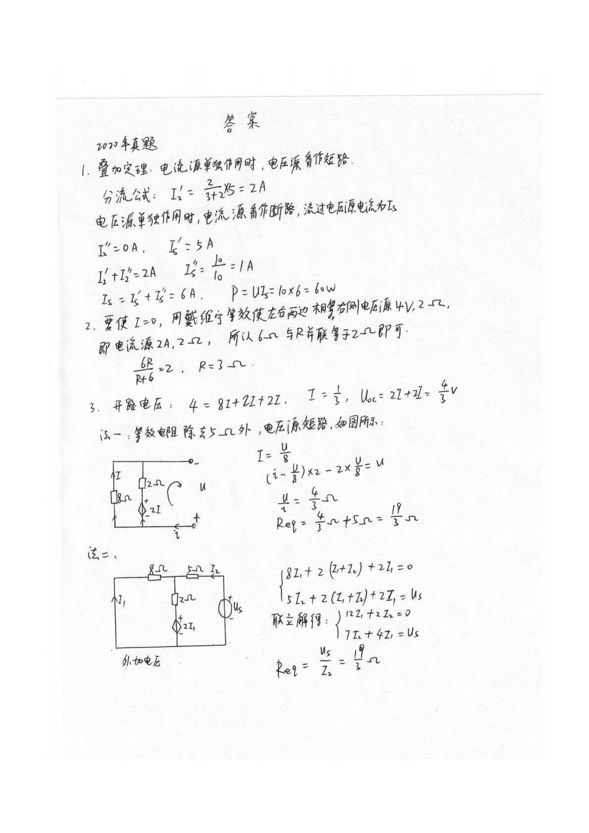 清华大学827电路原理2009年真题答案