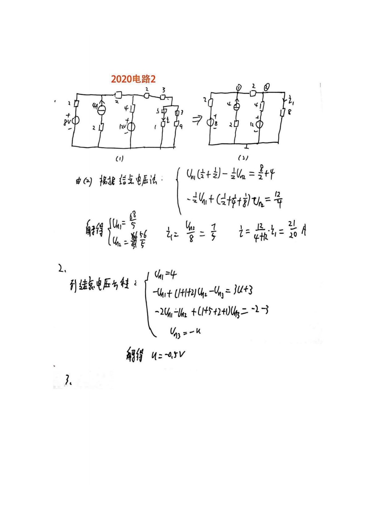 河南理工大学844电路理论2020年真题答案手写版
