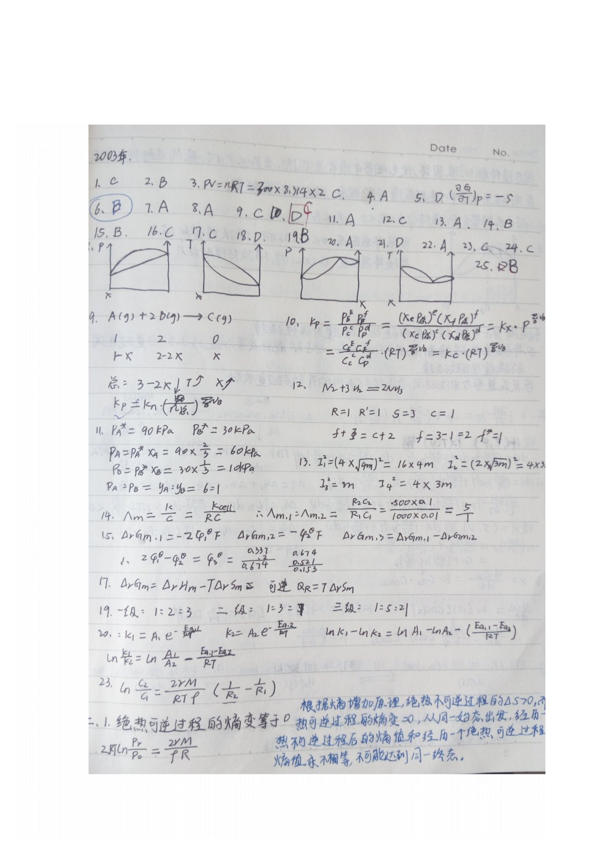 陕西师范大学730物理化学(含结构化学)2003年真题答案手写版