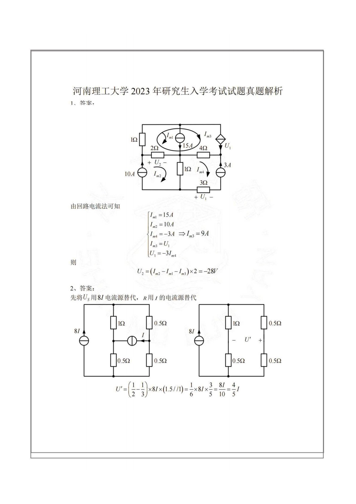 河南理工大学844电路理论2023年真题答案