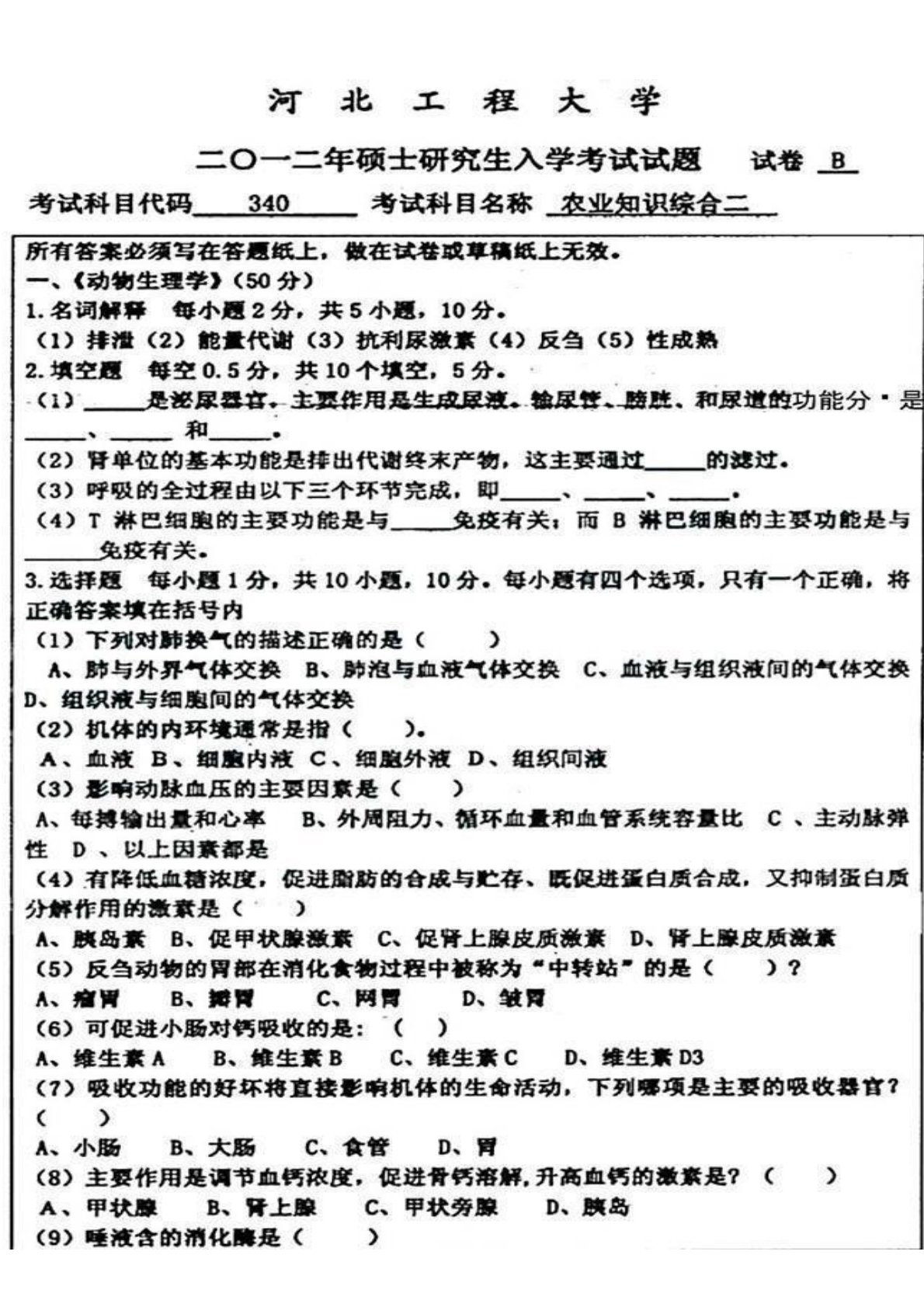 河北工程大学340农业知识综合二2012年考试真题