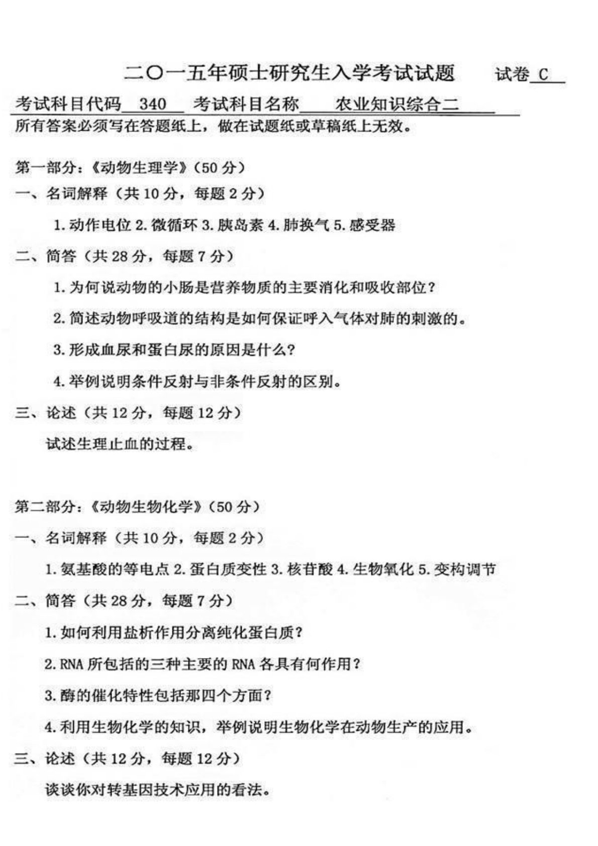 河北工程大学340农业知识综合二2015年考试真题