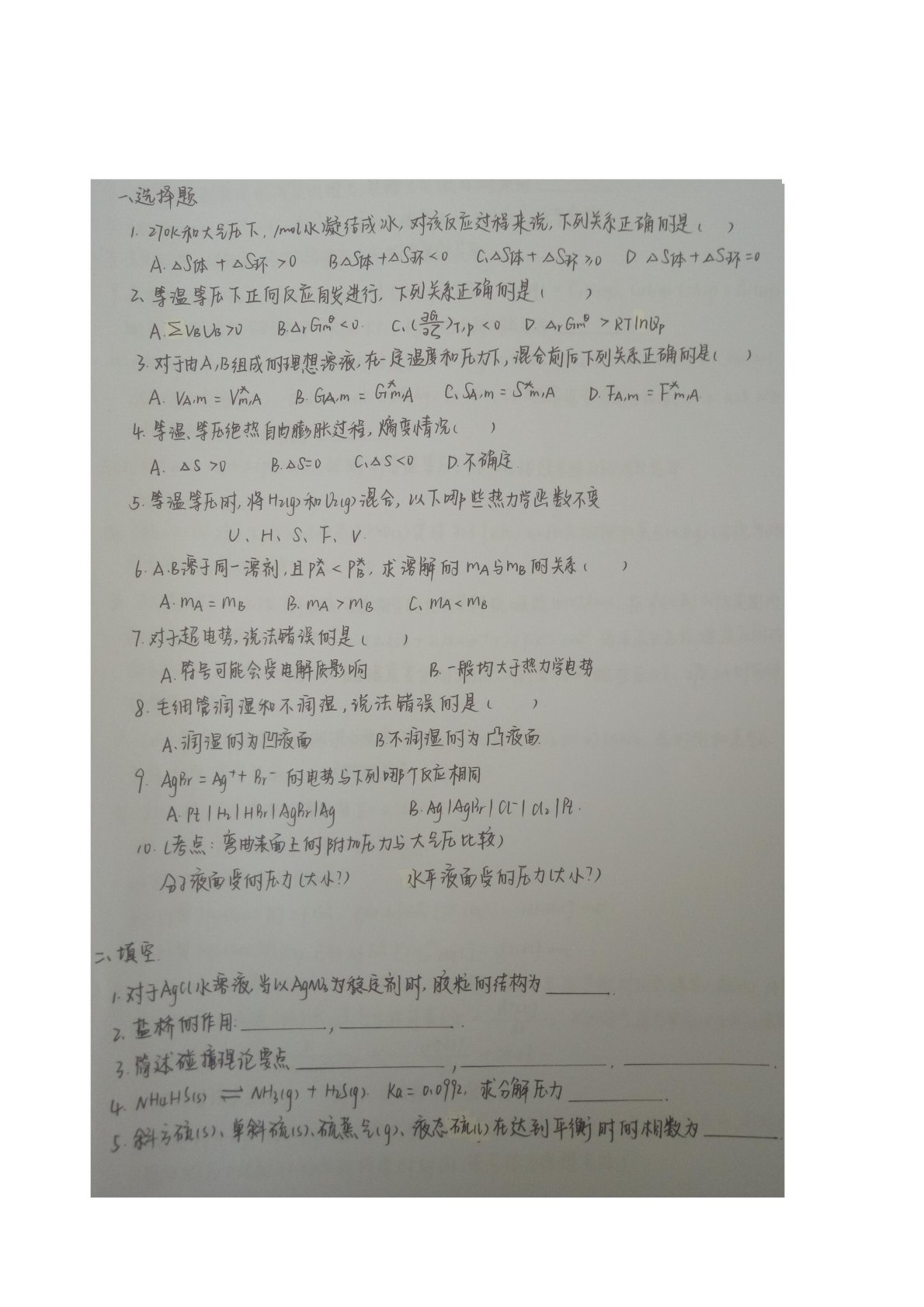 陕西师范大学730物理化学(含结构化学)2018年真题手写版