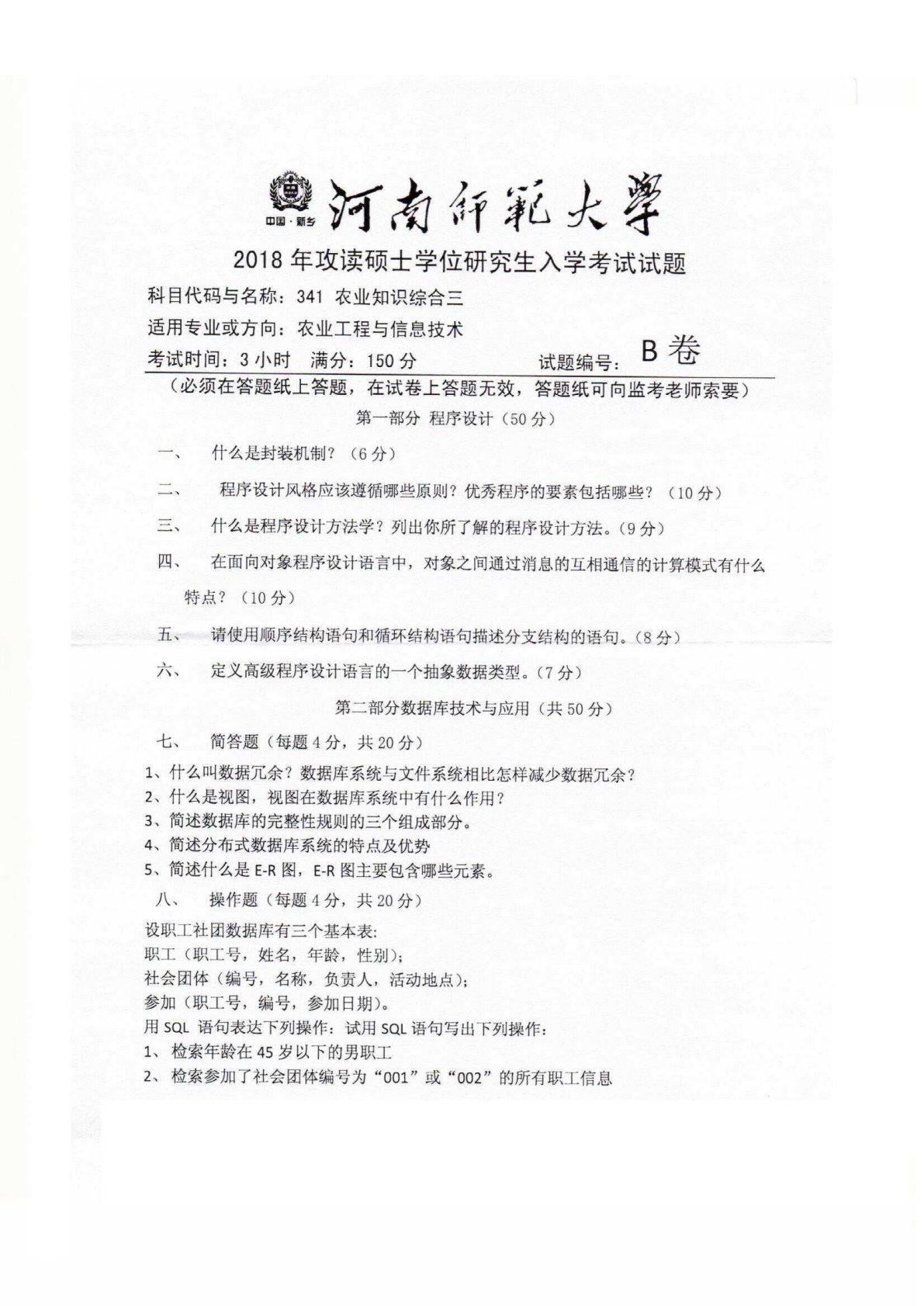 河南师范大学341农业知识综合三2018年真题