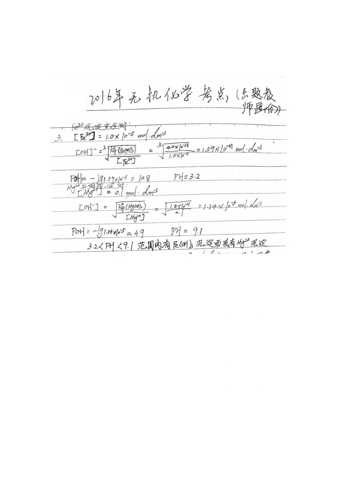 山西大学622综合化学一(无机化学、分析化学各 50%)2016年真题手写版