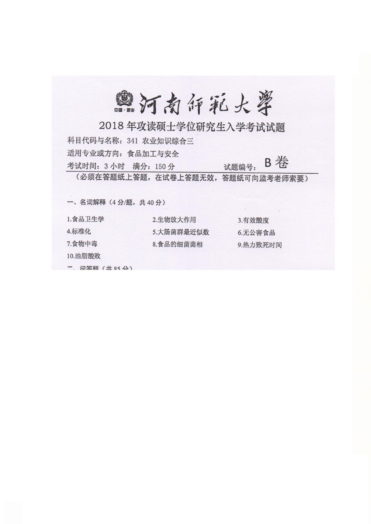 河南师范大学341农业知识综合三2018年真题1