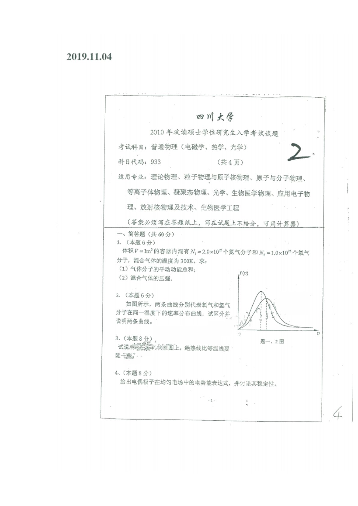 四川大学822普通物理(光学、电磁学)2010年真题1.