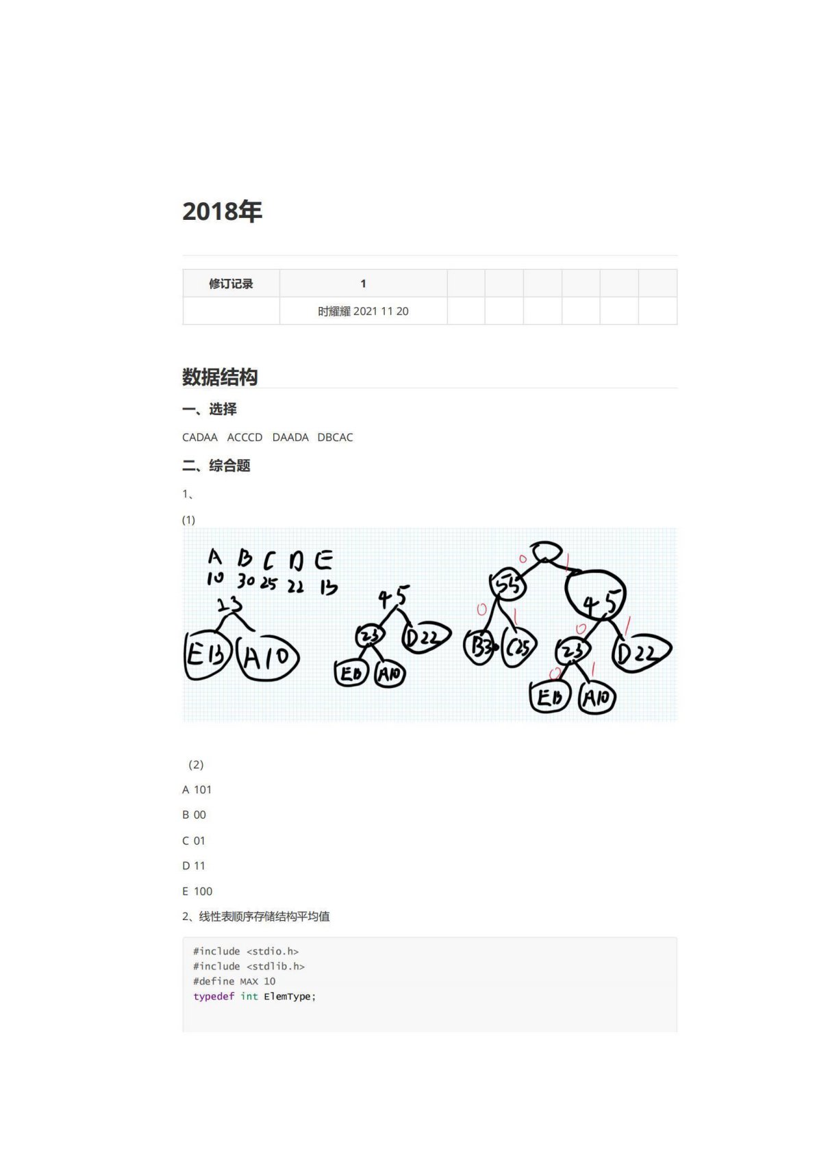 河南师范大学846数据结构与C程序设计2018年真题答案