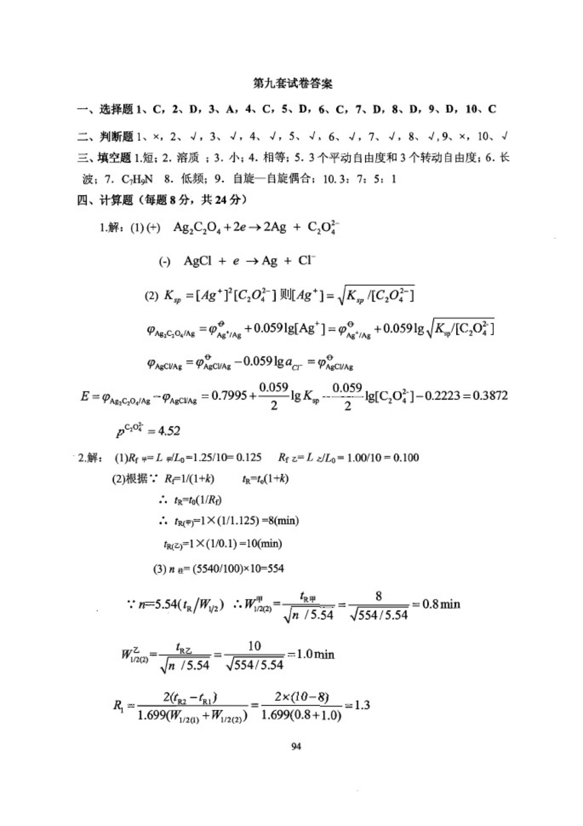沈阳药科大学614分析化学第九套试卷答案