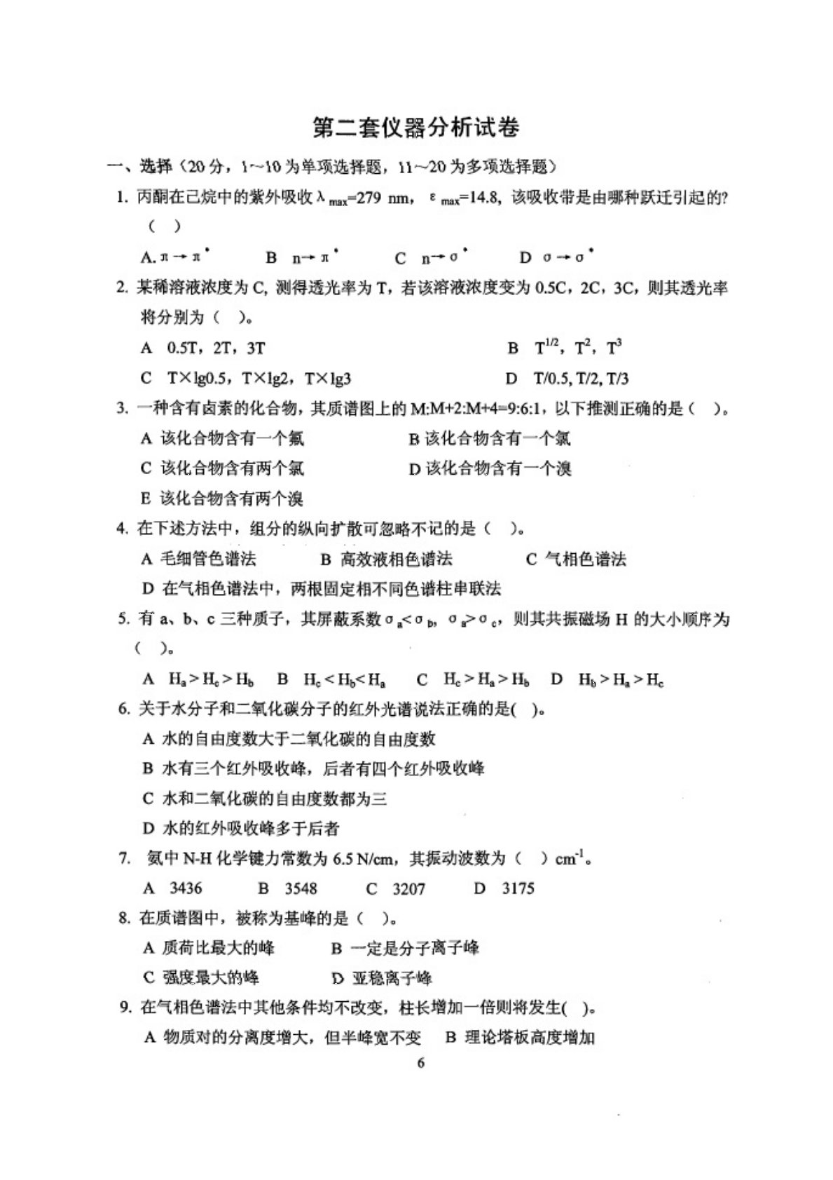 沈阳药科大学614分析化学第二套试卷
