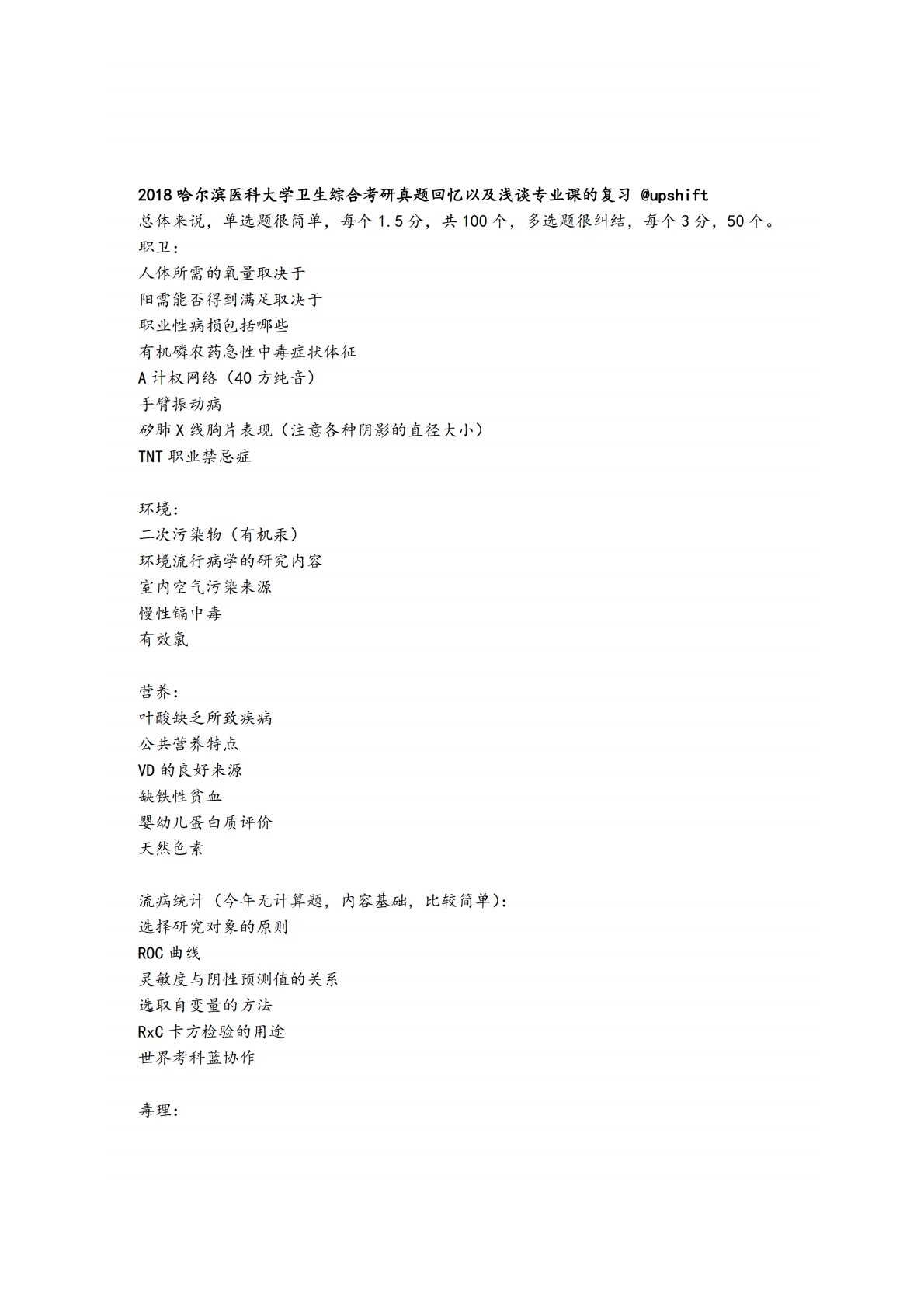 哈尔滨医科大学353卫生综合2018年真题回忆版