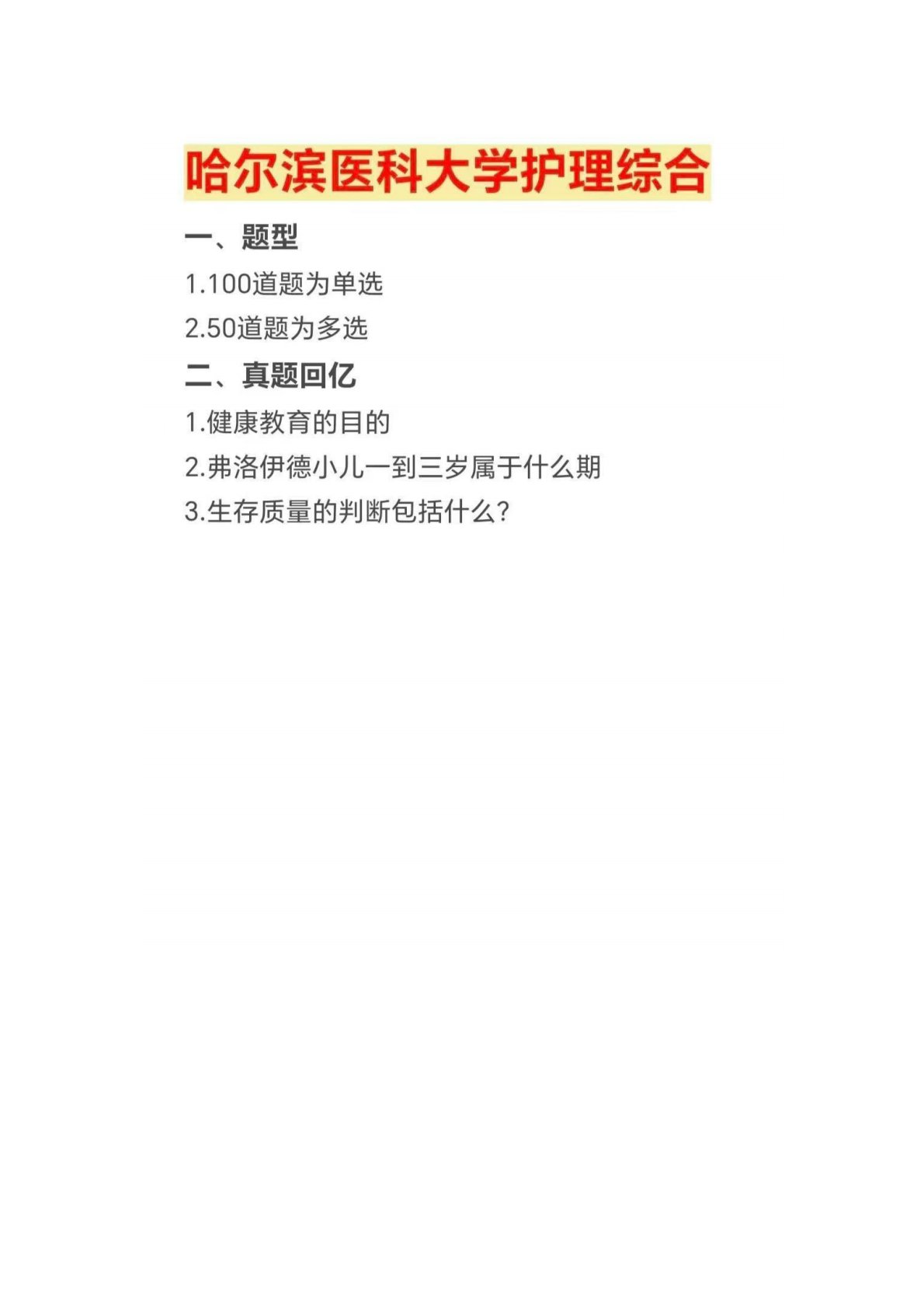 哈尔滨医科大学308护理综合2024年真题回忆版