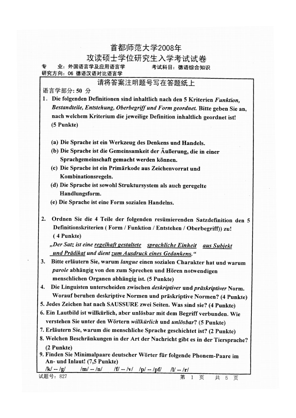 首都师范大学827德语综合知识2008年真题