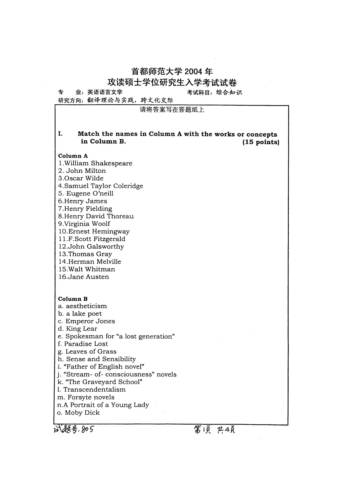 首都师范大学825法语综合知识2004年真题