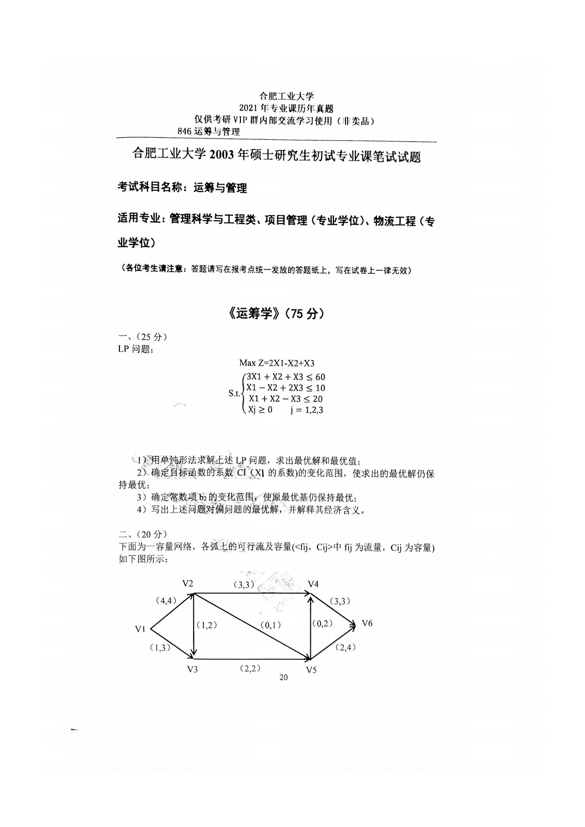 合肥工业大学846运筹与管理2003年真题