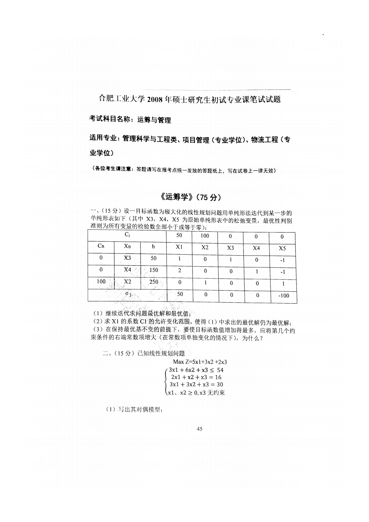 合肥工业大学846运筹与管理2008年真题