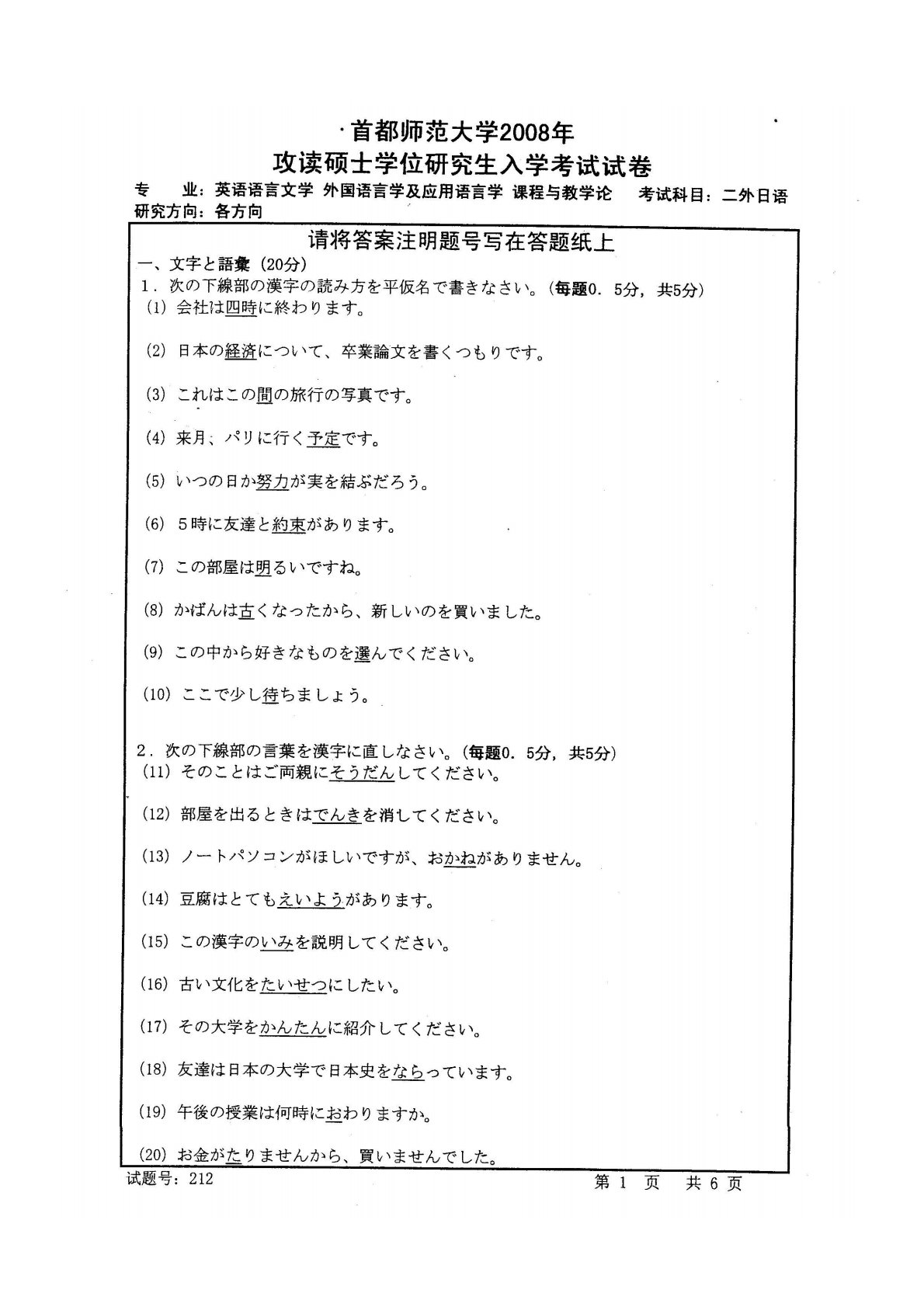 首都师范大学243二外日语2008年真题