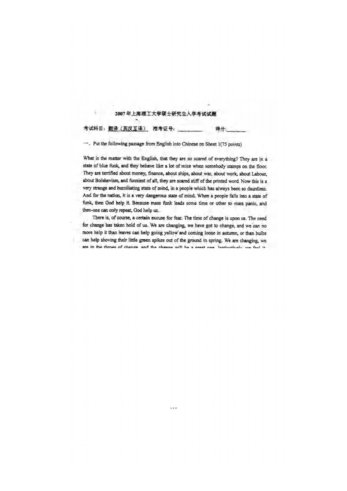 上海理工大学838翻译(英汉互译)2007年真题
