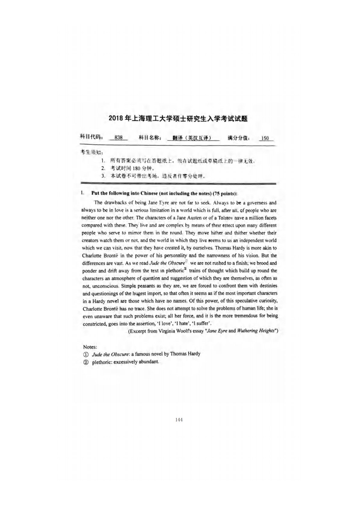 上海理工大学838翻译(英汉互译)2018年真题