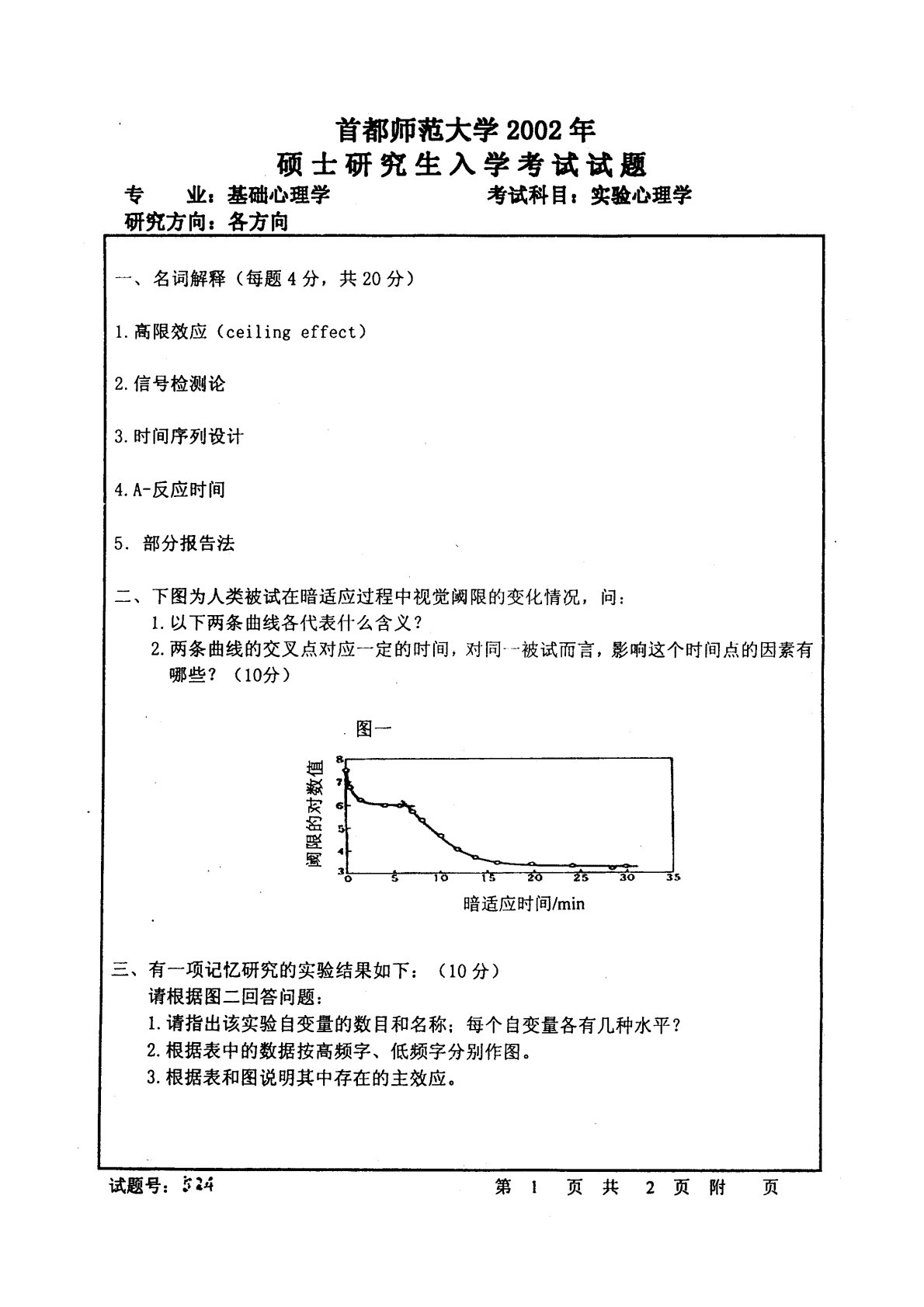 首都师范大学347心理学专业综合2002年真题(实验心理学)