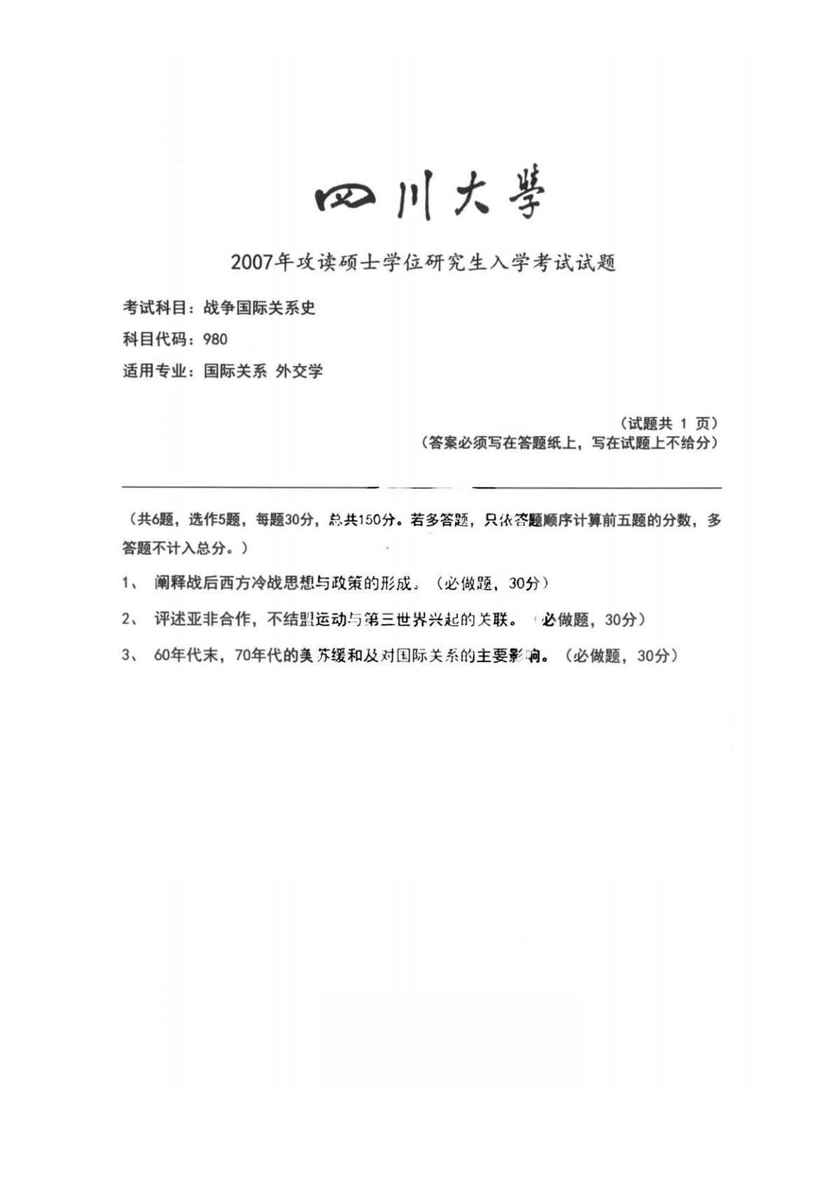 四川大学818政治学综合2007年真题