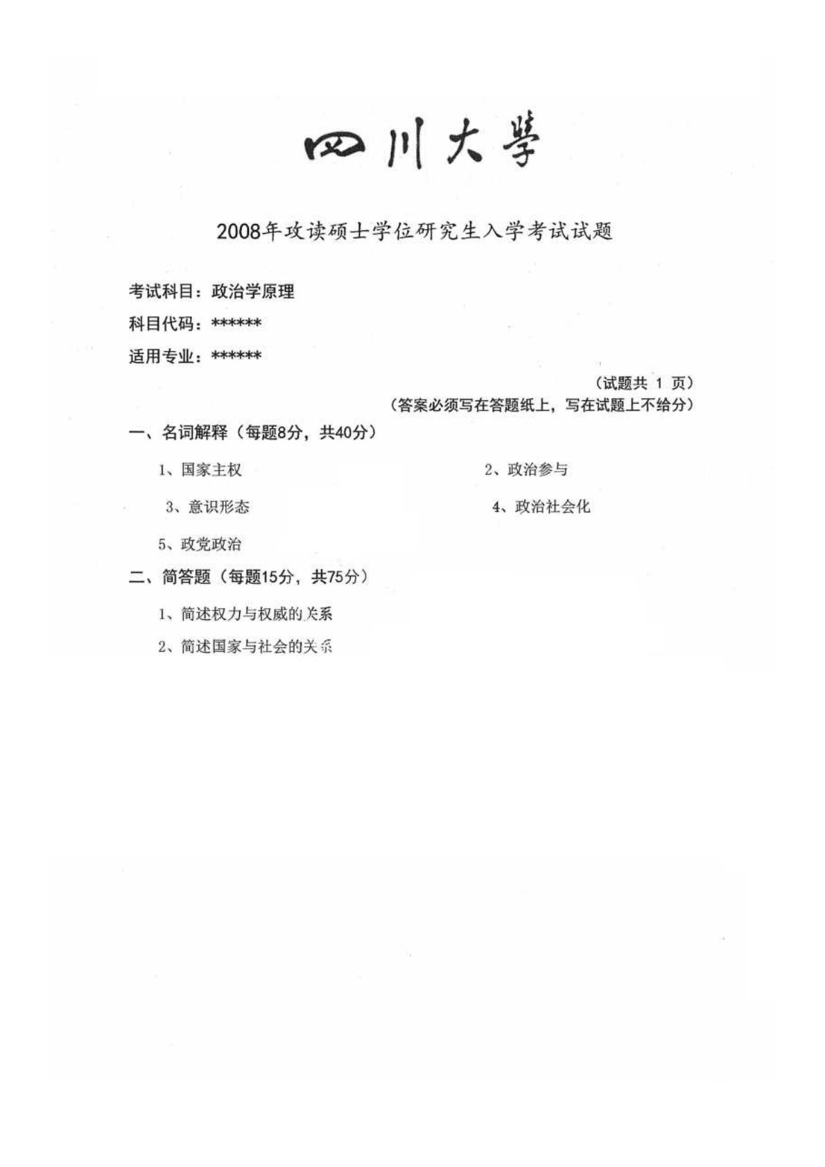 四川大学672政治学原理2008年真题