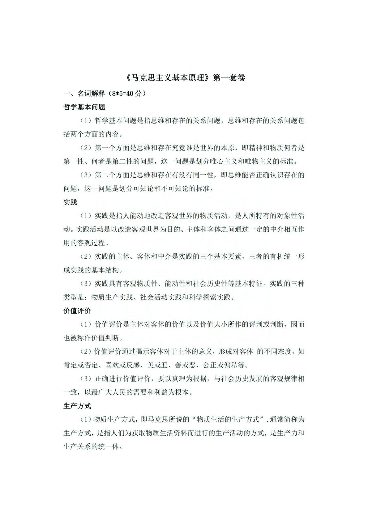 陕西师范大学705马克思主义基本原理押题四套卷答案