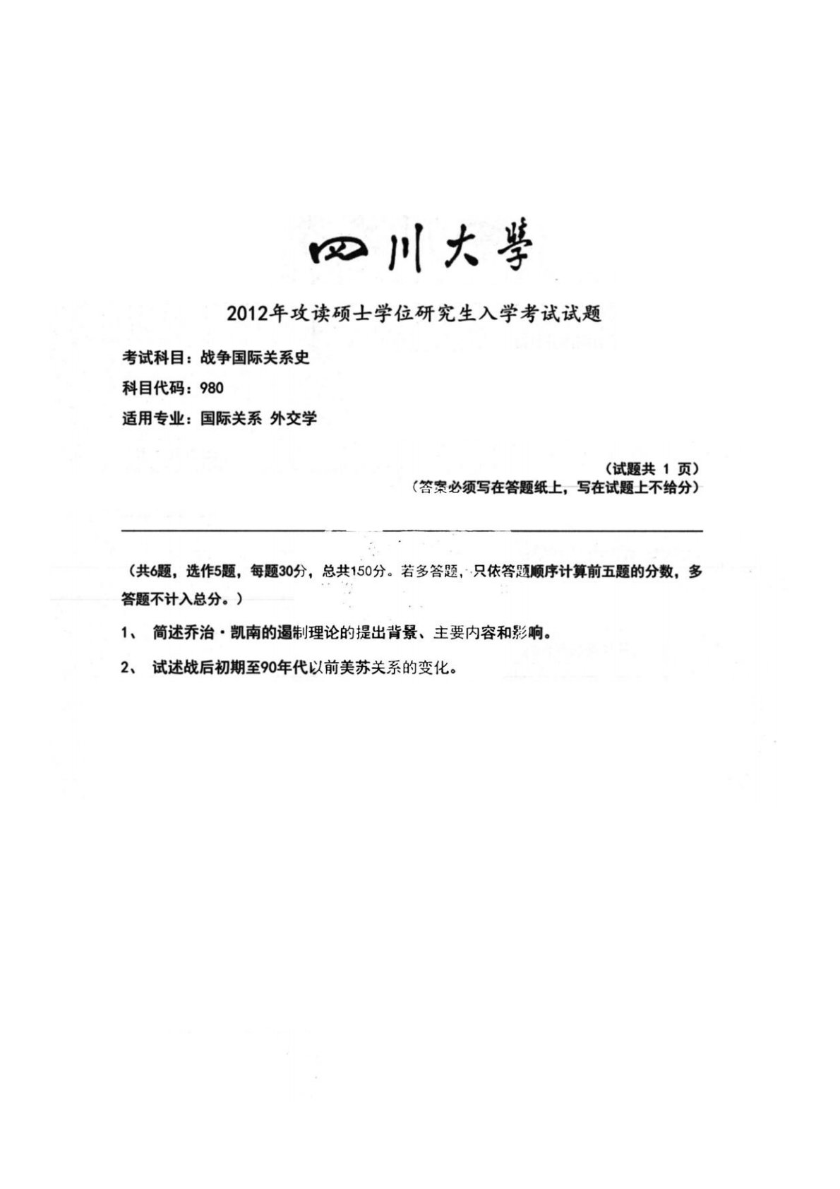 四川大学818政治学综合2012年真题