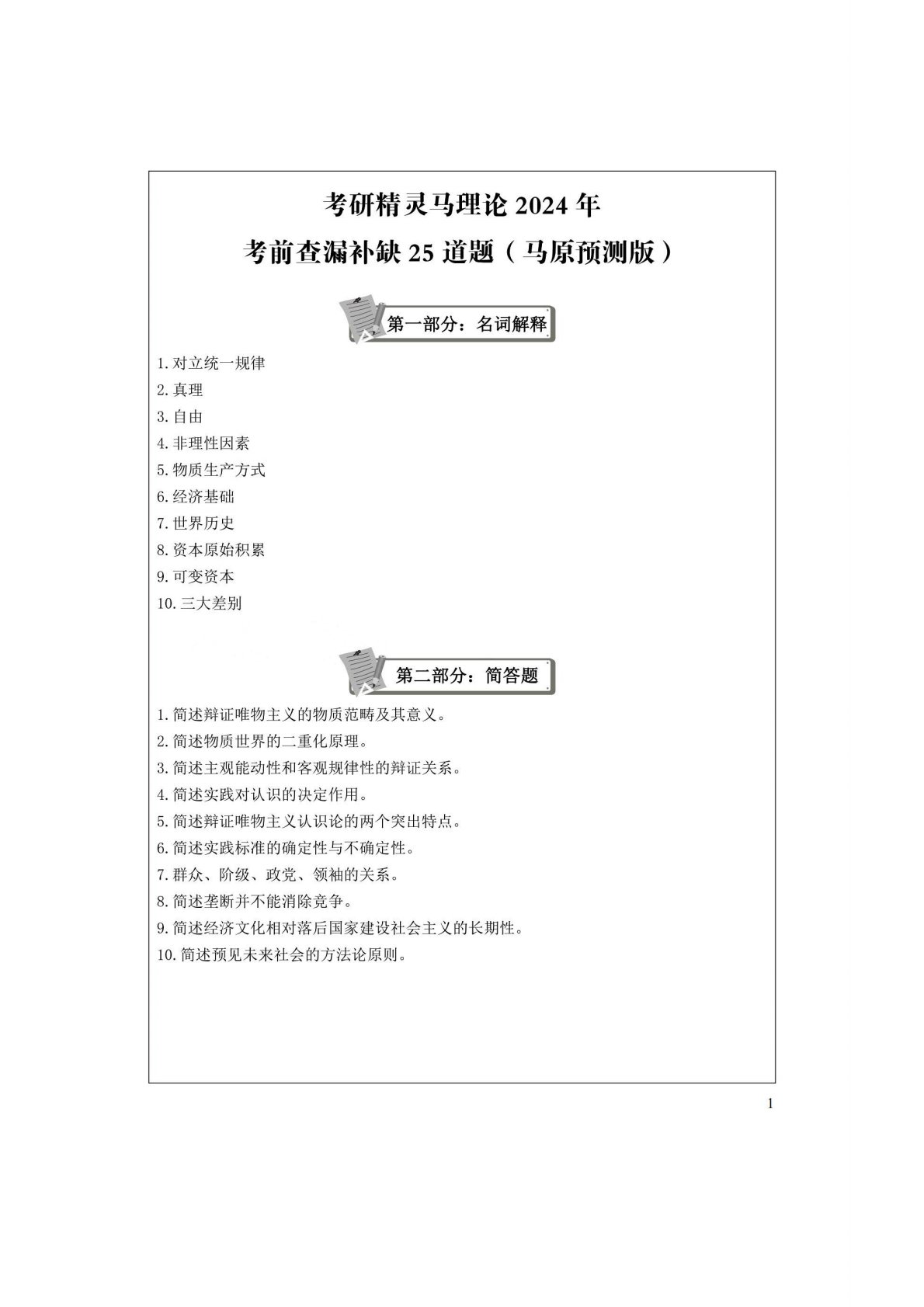 陕西师范大学705马克思主义基本原理查漏补缺25题