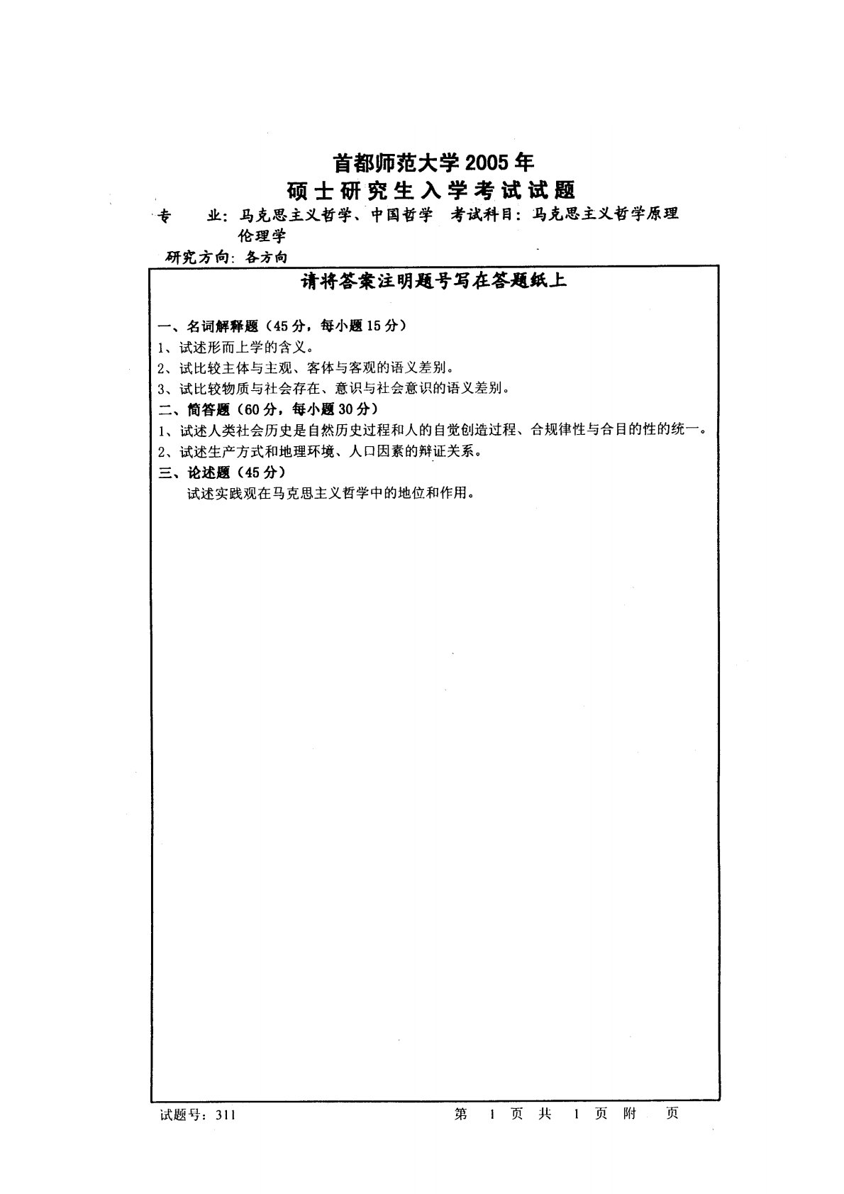 首都师范大学715马克思主义哲学原理2005年真题