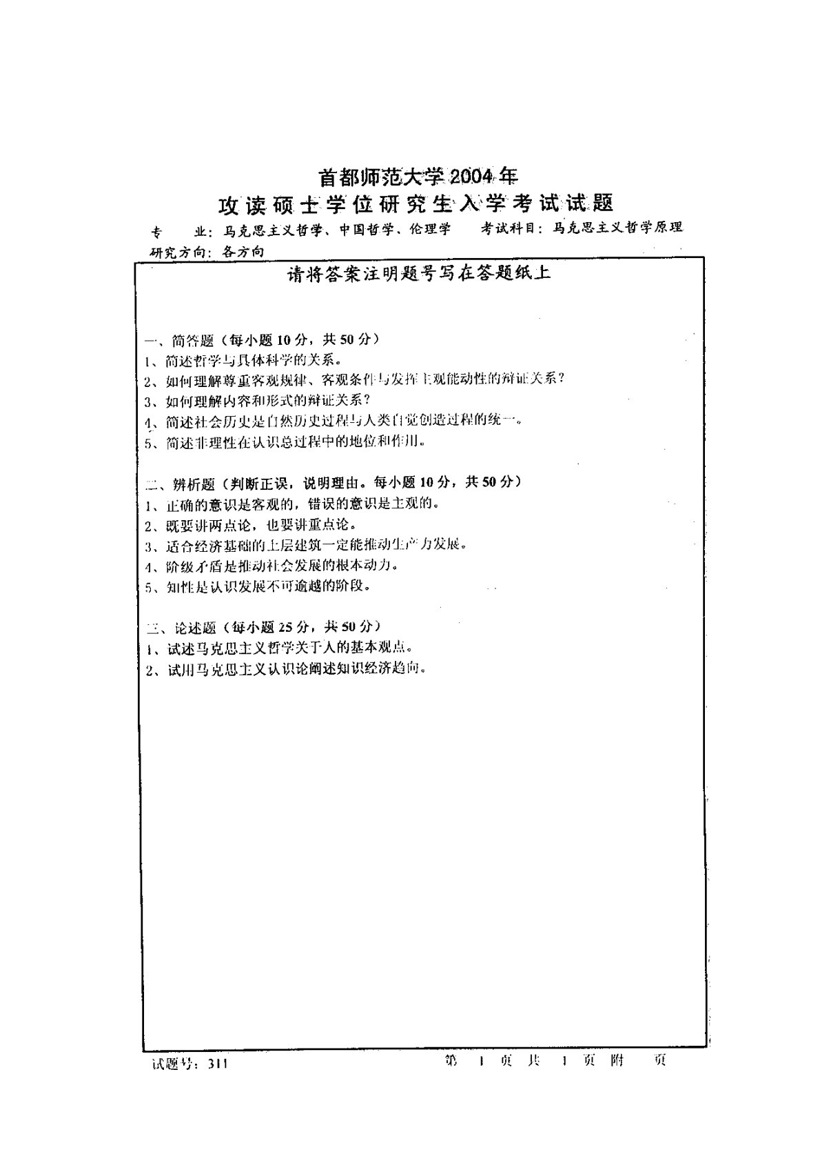 首都师范大学715马克思主义哲学原理2004年真题1