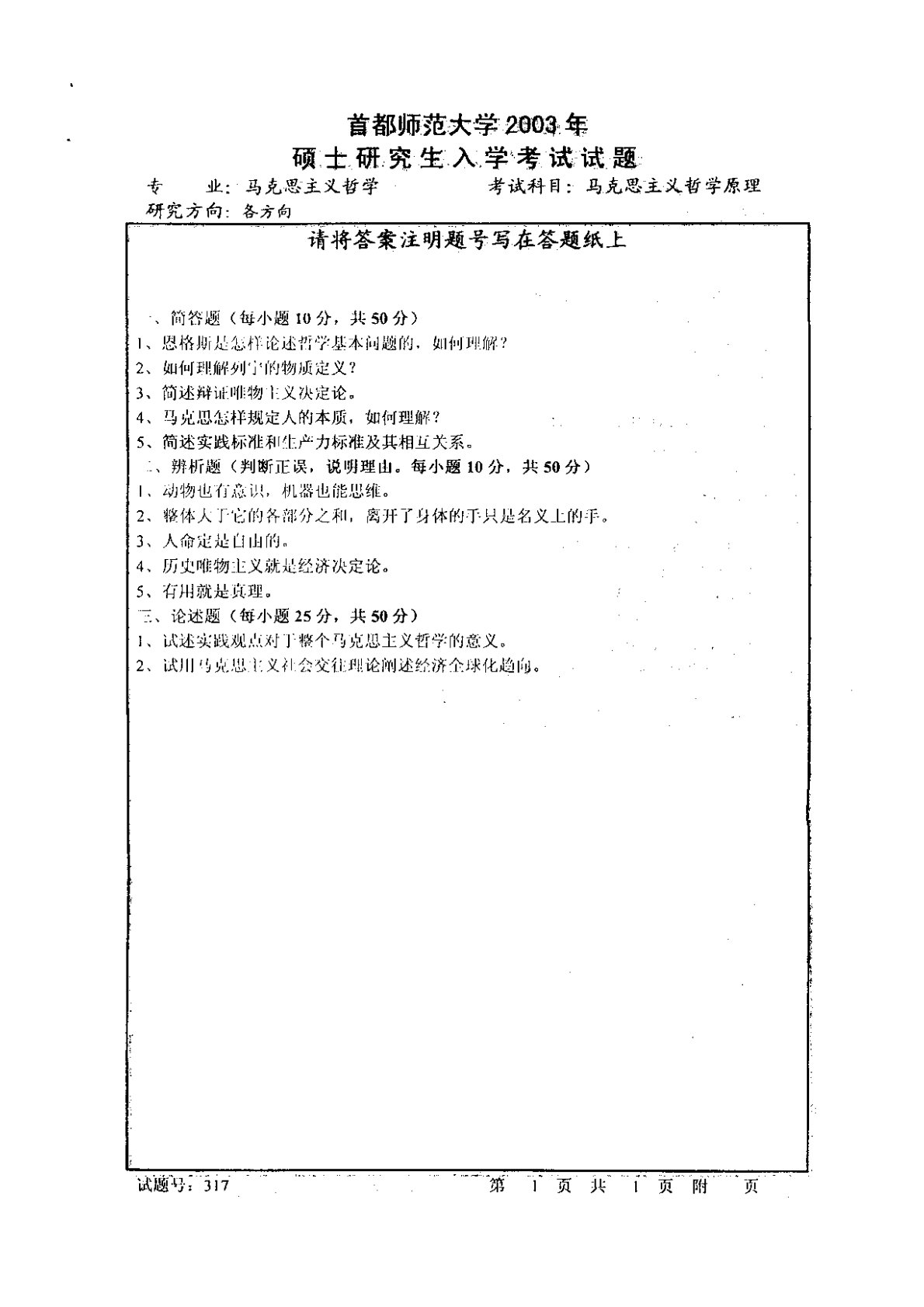 首都师范大学715马克思主义哲学原理2003年真题1