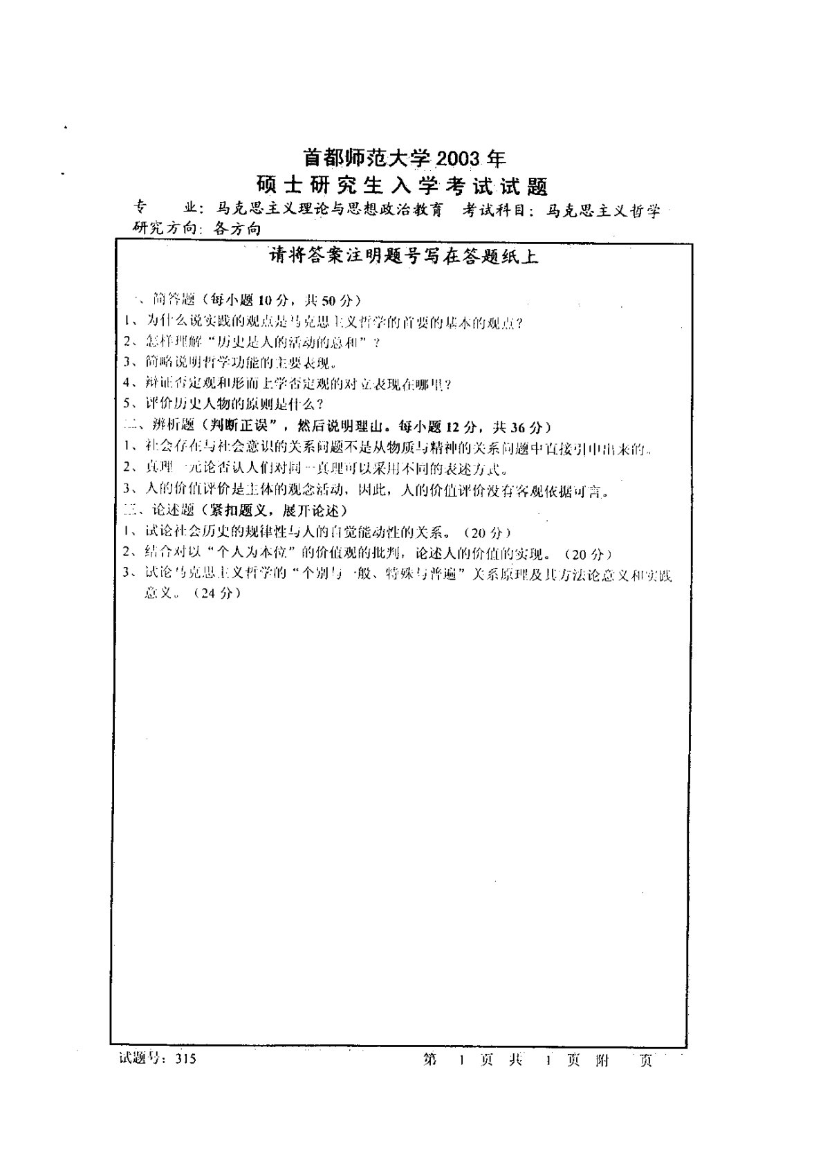 首都师范大学715马克思主义哲学原理2003年真题