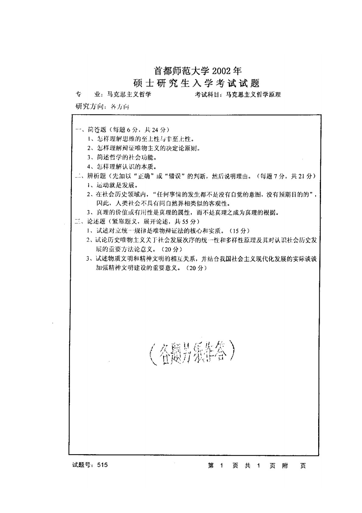 首都师范大学715马克思主义哲学原理2002年真题1