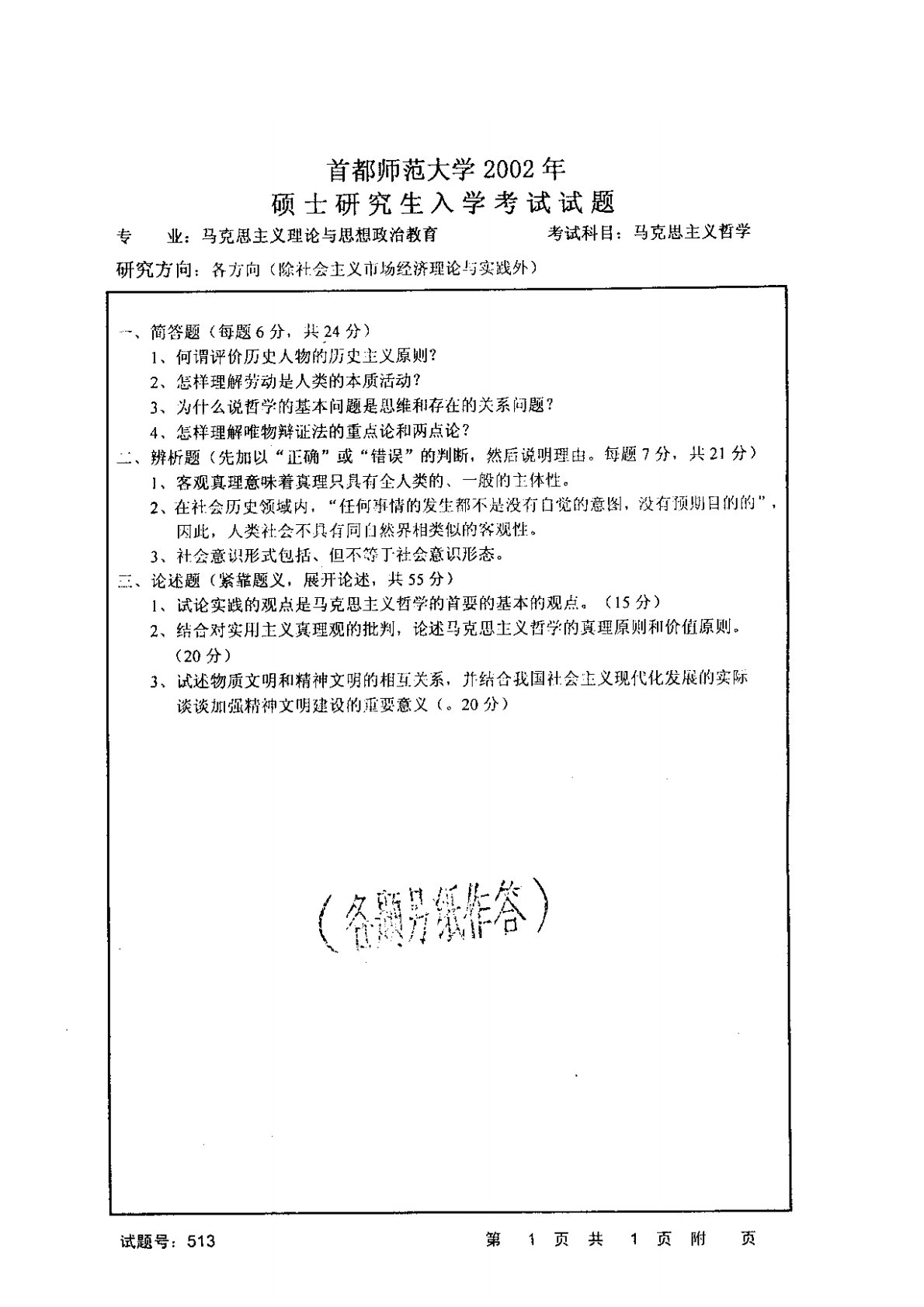 首都师范大学715马克思主义哲学原理2002年真题
