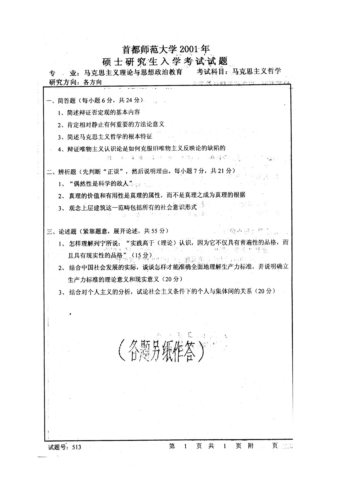 首都师范大学715马克思主义哲学原理2001年真题