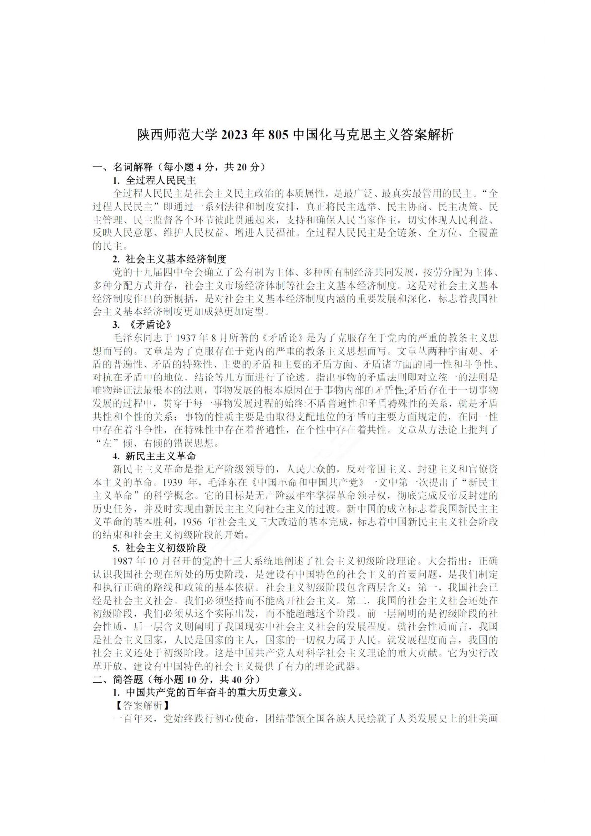 陕西师范大学805中国化马克思主义2023年真题答案
