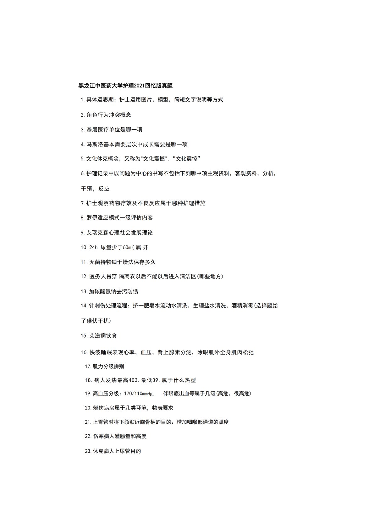 黑龙江中医药大学308护理综合2021年真题回忆版