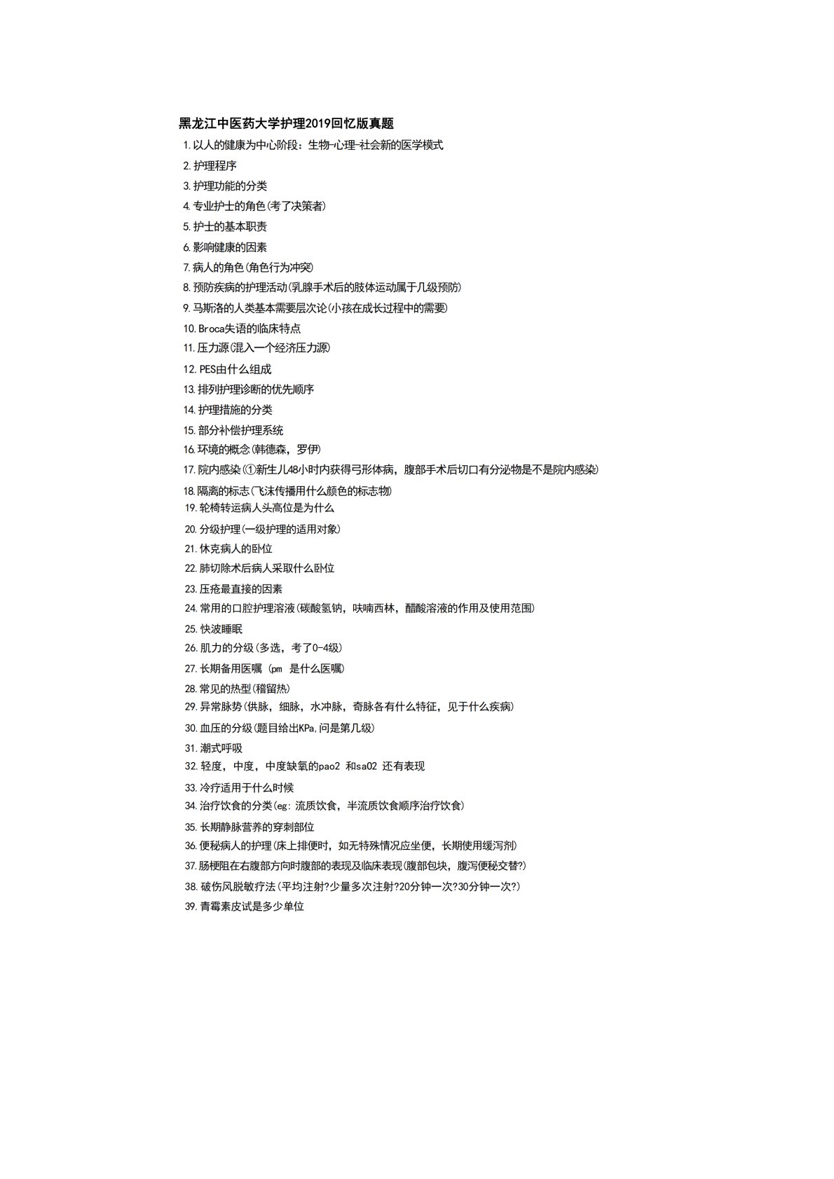 黑龙江中医药大学308护理综合2019年真题回忆版