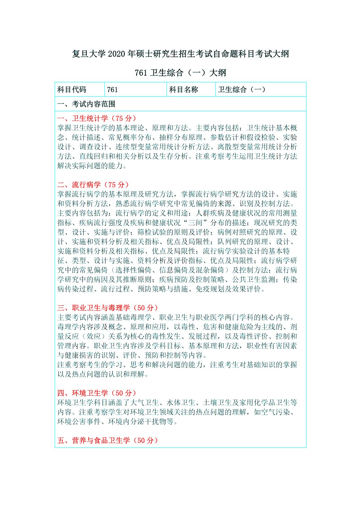 复旦大学353卫生综合(专硕)2020年考试大纲