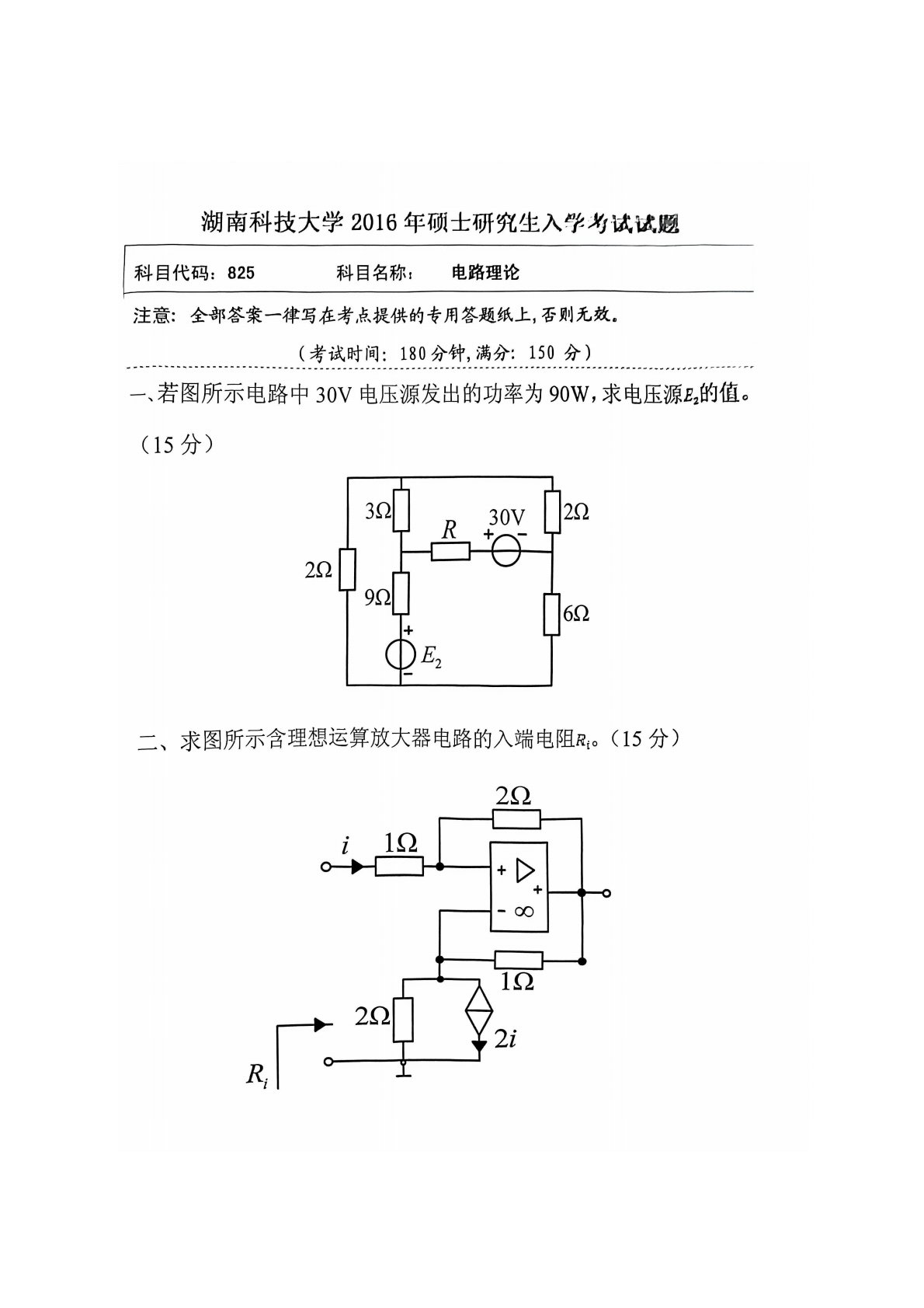 湖南科技大学2016年823电路考研真题