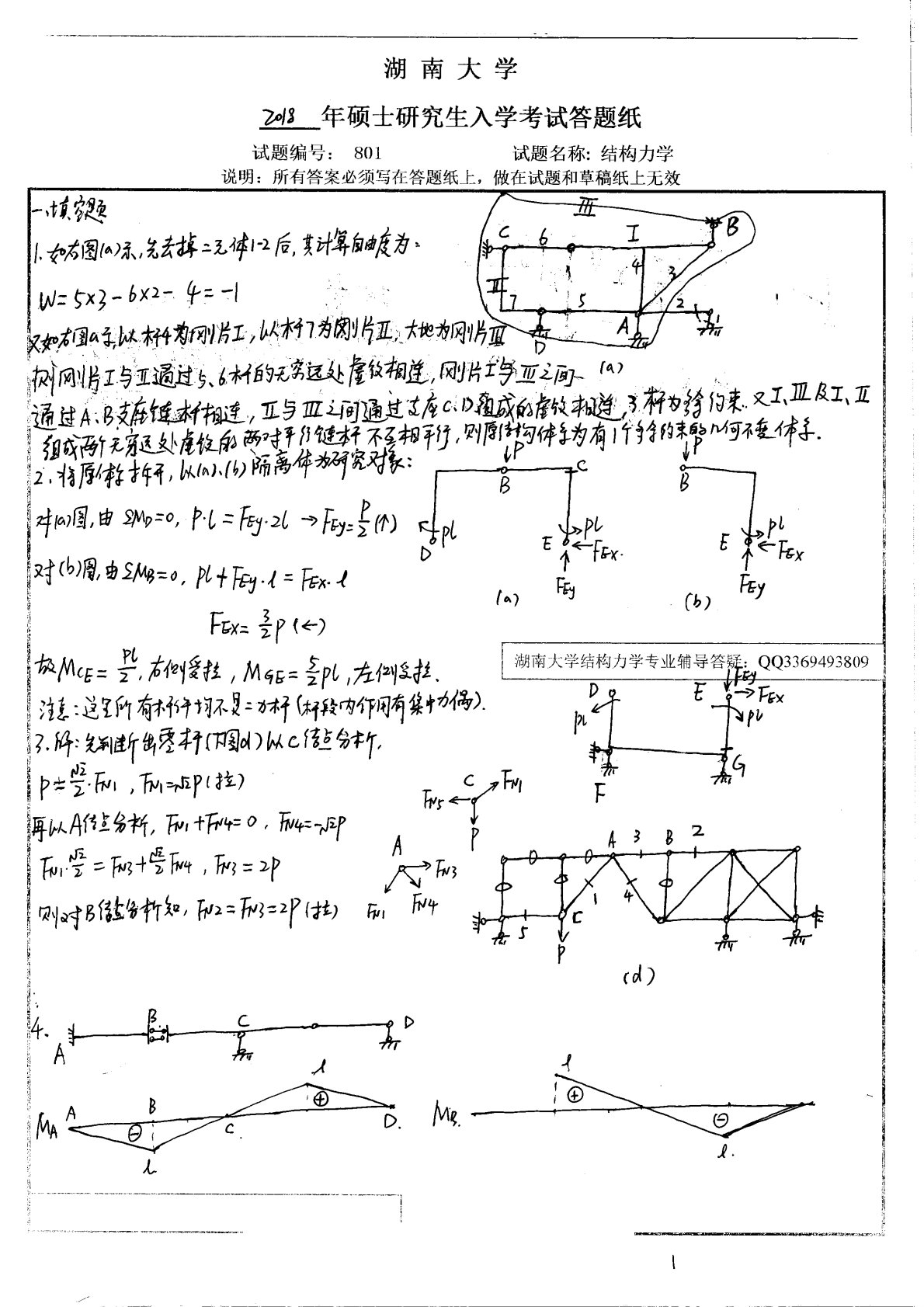 湖南大学2018年801结构力学考研真题答案