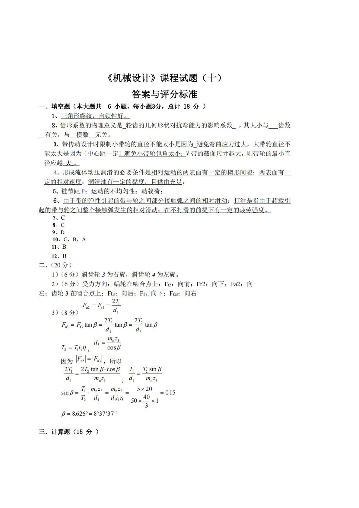 湖南工业大学807机械设计试题十答案