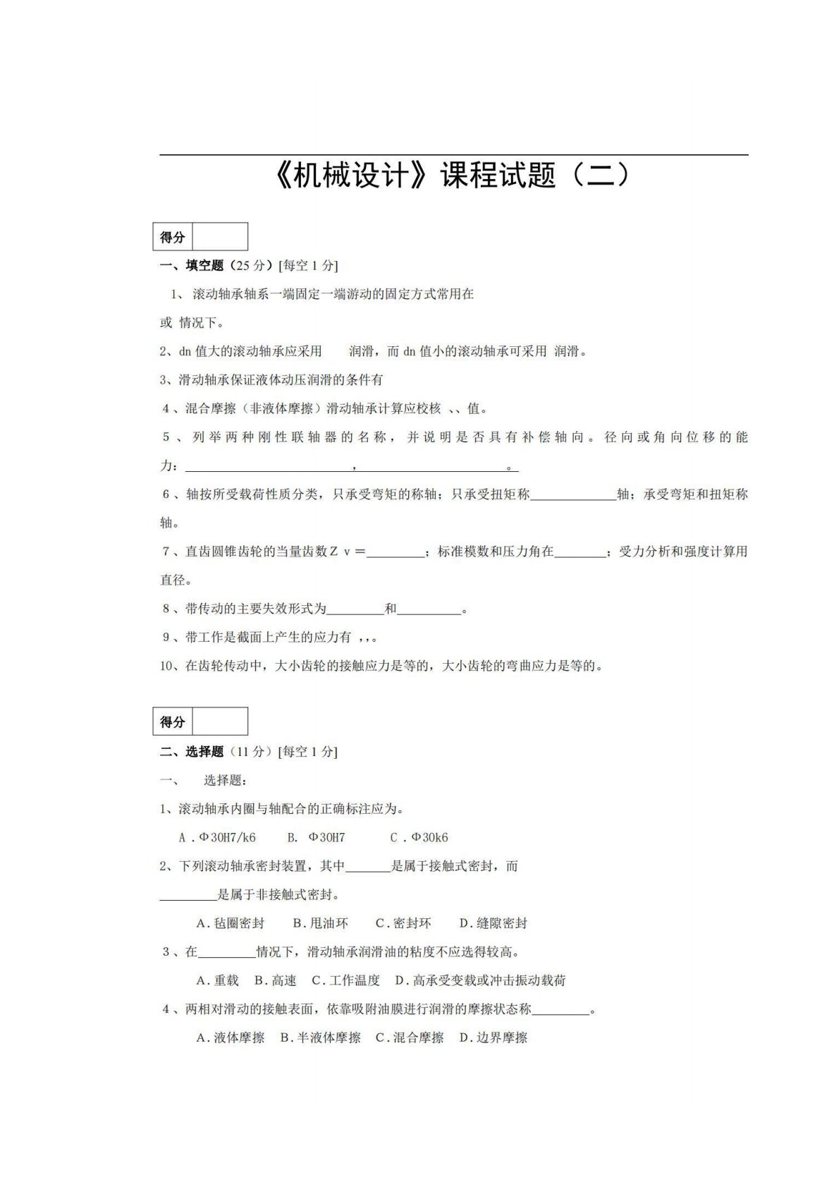 湖南工业大学807机械设计试题二