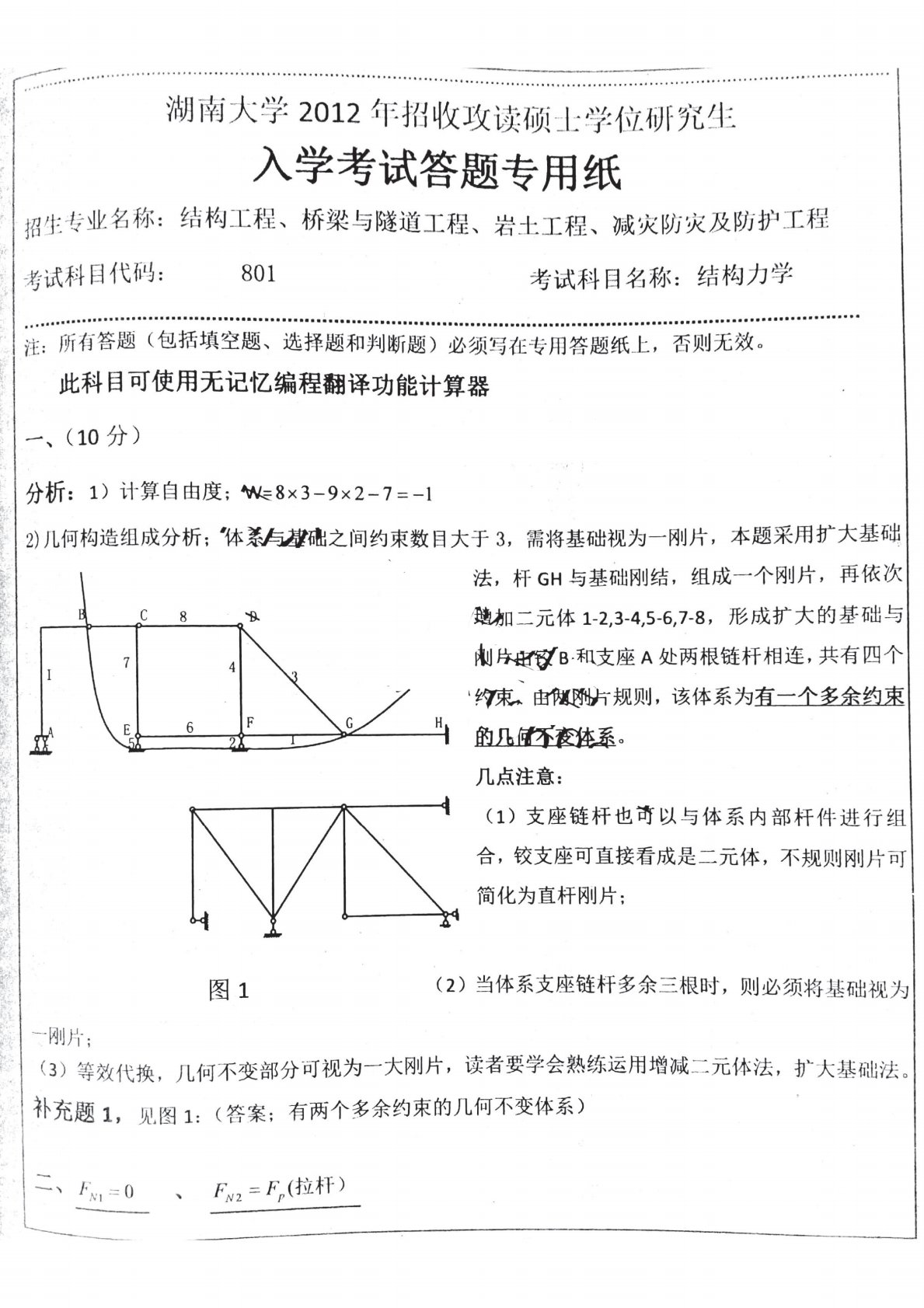 湖南大学2012年801结构力学考研真题答案