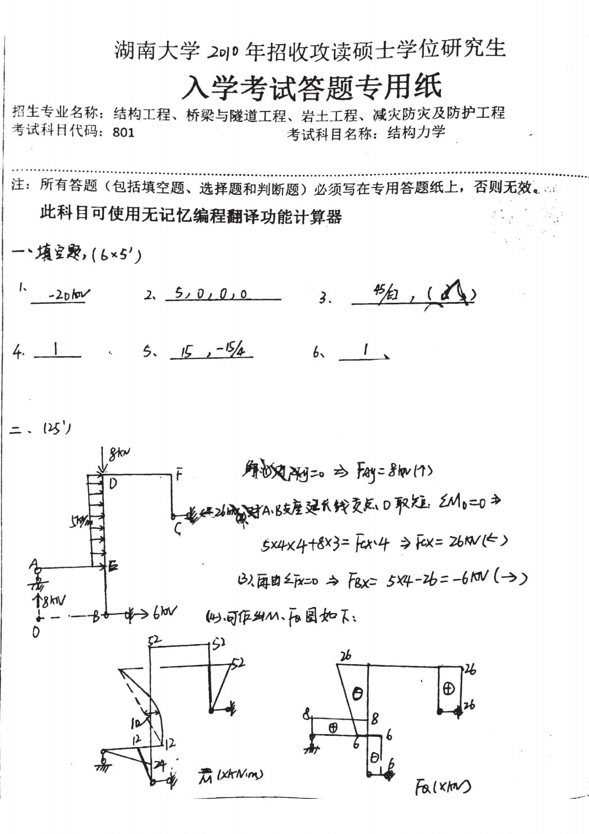 湖南大学2010年801结构力学考研真题答案