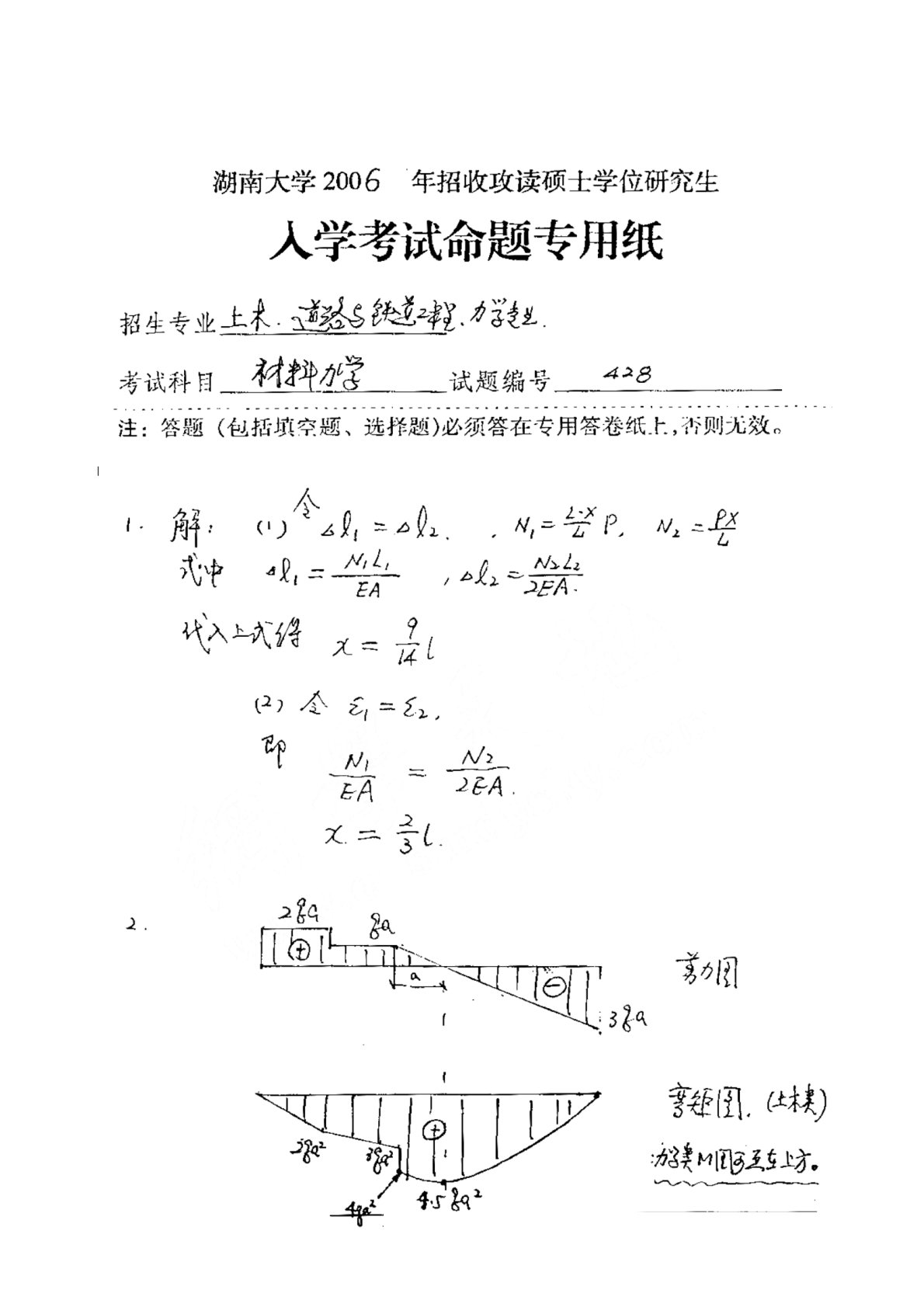 湖南大学2006年812《材料力学》考研真题答案